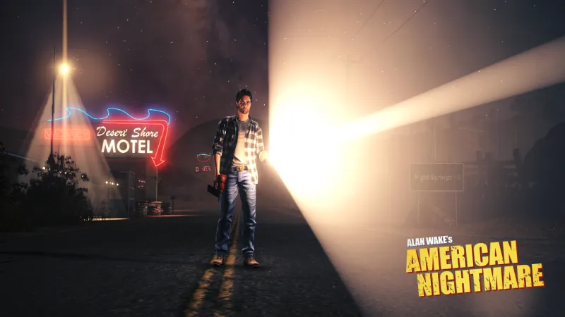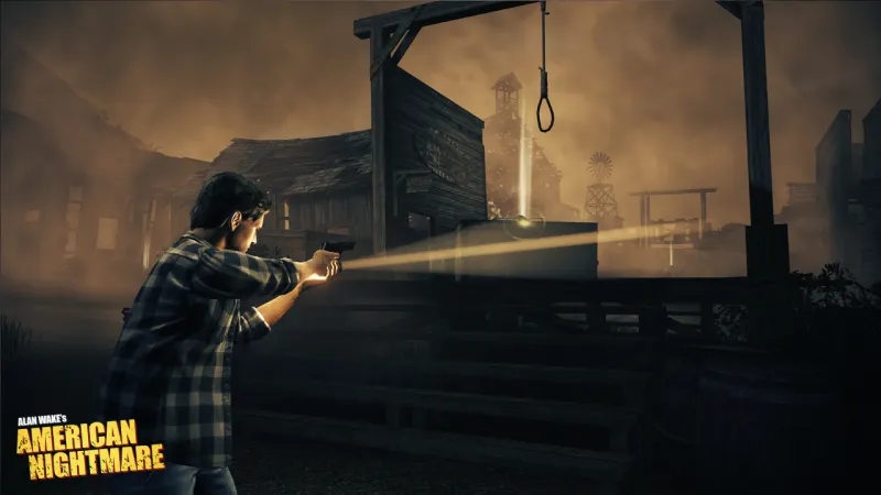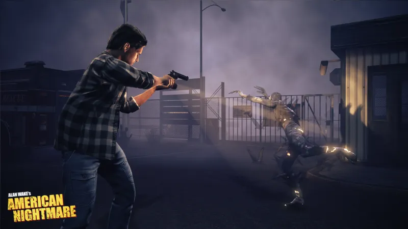 “Story is not the main focus here,” Häkkinen says. “If [the original] was two-thirds story and one-third action, then I guess American Nightmare is two-thirds action and one-third story.” When I pick up a flashlight and a gun to reacquaint myself with the controls, Remedy’s action-focused sentiment quickly becomes apparent. As I make my way past an oil rig, it starts spewing out the Taken, the primary enemies in Alan Wake. After picking off a few, a text prompt reminds me that standing under street lamps restores health and keeps me safe from the darkness. I see more of the Taken emerging from the oil rig, so I take the hint and head toward the nearest lamp.