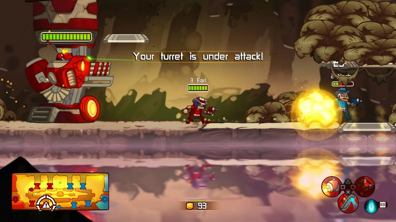 From the first moment you boot the game up, Awesomenauts displays a sly sense of humor and great deal of charm. It’s clearly inspired by late ‘80s and early ‘90s cartoons, and even has a great Power Rangers-style cheesy rock theme song. The song perfectly captures the vibe of shows like Mighty Morphin Power Rangers. The cast of characters is diverse, from the corny hip-hop amphibian Froggy G to the Mars Attacks-inspired Voltar the Omniscient.