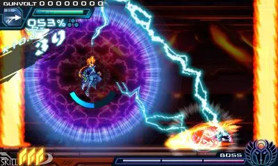 Gunvolt can take a lot of damage by brute-forcing his way through regular foes, but that strategy isn't as great during boss battles. These multicolored foes harness powers like blasting out fireballs, summoning insect hordes, and even cloning themselves. The one-on-one battles are intense and challenging, requiring careful memorization of attack patterns and quick reflexes. Gunvolt's limited special skills, like regaining health or stabbing enemies with huge electro-swords, help immensely during big battles. The majority of the bosses are reasonably difficult, but the encounters in the last few levels pack a powerful kick in the groin. I appreciated the no-nonsense final showdowns, but I found the sudden surge in deaths jarring. Some bosses drop alternate primary weapons, some of which fire nodes that travel up walls or pass through enemies. I liked tinkering with the new weapons, but didn't find anything more reliable than the rapid-firing gun you begin with.
