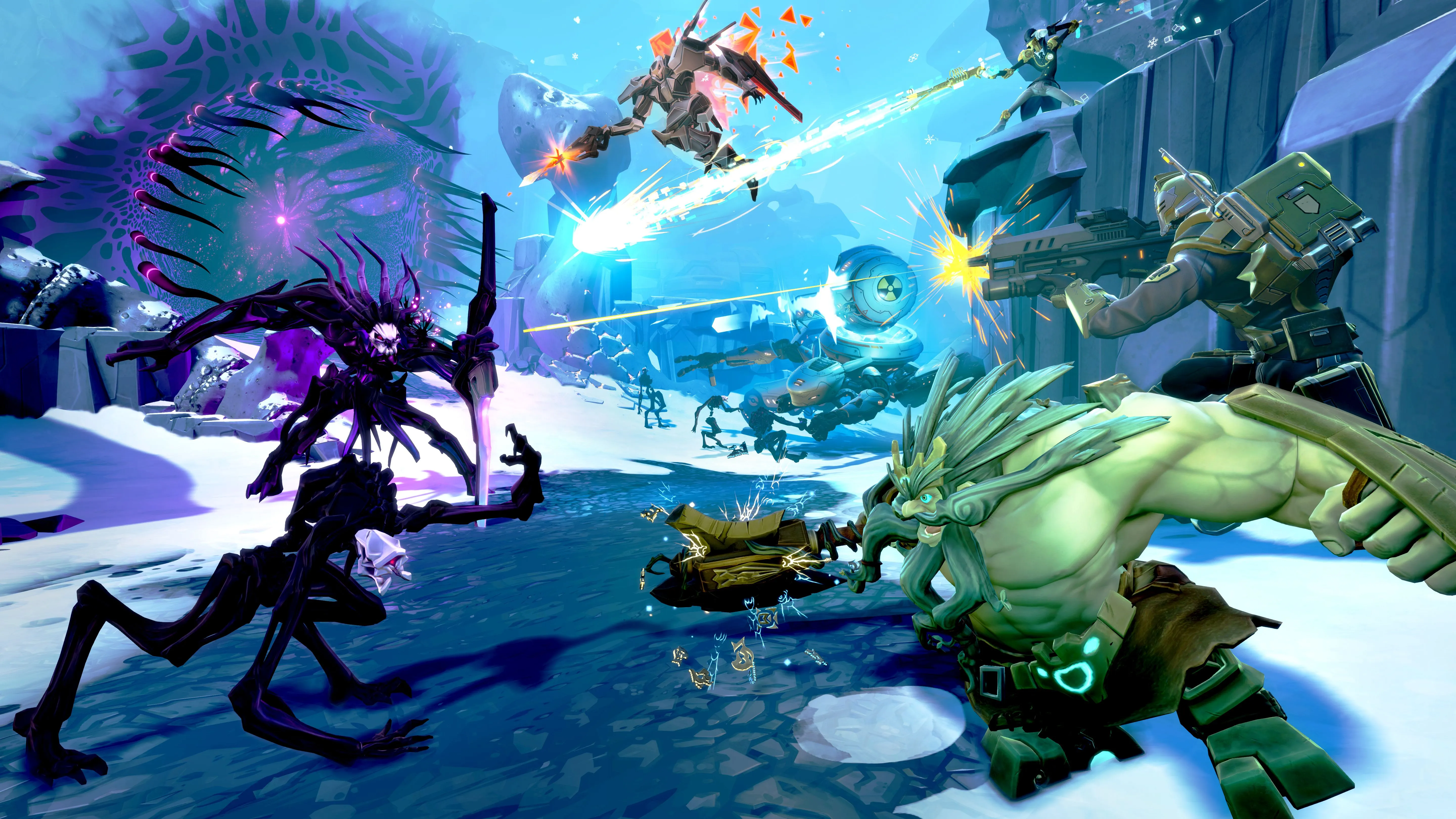 As previously announced, Battleborn will have three different modes. In Incursion, the first team to destroy the enemy base prevails, while Devastation is a capture-and-hold mode, and Meltdown has you thwarting the opposition while your minions sacrifice themselves in a single incubator located in the center of the map. Battleborn also has a story mode that you can play solo or cooperatively with up to five players.