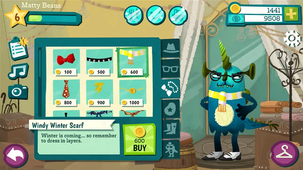 Players act as the assistant to a friendly-looking scientist who’s researching the monsters known as “Beatniks.” Depending on how players shape their Beatnik, its musical style can vary between peppy harpsichord and aggressive rock n’ roll. Players help their Beatnik evolve by completing tasks like winning arcade games, dressing their Beatnik up in music genre-inspired clothing, or playing their own music inside or out of the game. Players can also help build their Beatnik’s city and apartment by collecting activity rewards.
