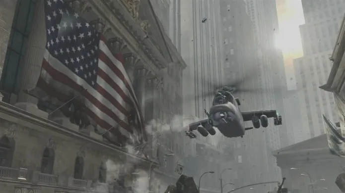 For the first two or three hours, the game hurries from country to country with a jarring narrative that doesn’t succeed in getting much information across. All you know is this Makarov fellow is a bit unsavory, and he wants to kill a lot of people. In your efforts to find and kill him, the game finds excuses to have you shoot up the floor of the New York Stock Exchange, protect the Russian president on a jet, attempt to stop a chemical attack in Paris, and watch a supposedly offensive scene that’s essentially a less effective and less necessary version of Modern Warfare 2’s “No Russian” mission. These early scenarios are more concerned with topping the big set piece moments from previous entries in the series than with putting forth a coherent narrative. In one scripted sequence that’s awesome, terrible, and hilarious at the same time, I was even forced to shoot a hyena multiple times in the head while I was in a church.