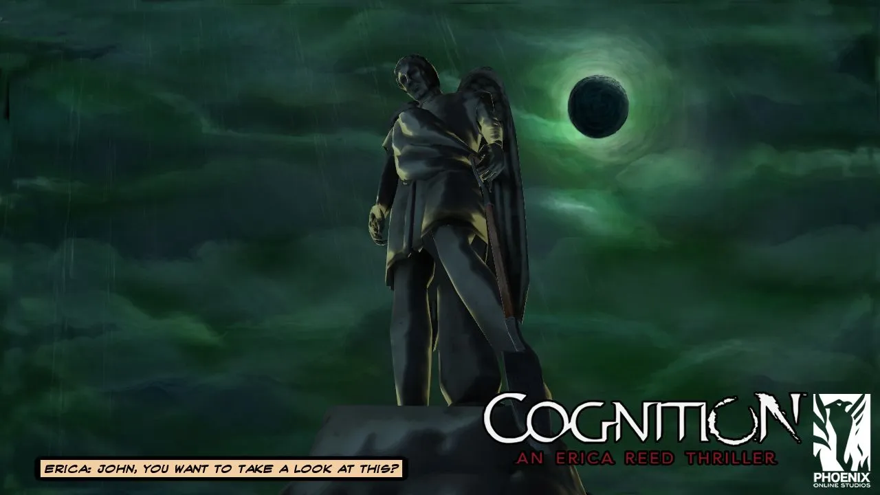 The most immediately striking feature of Cognition is its art style. Seasoned artist Romano Molenaar, of X-Men and Tomb Raider fame, lends his skilled hand to bring the crimson-haired heroine and her world to life. From the moving panels to the text font, the Cognition’s comic book style gels perfectly with the game’s adventure sensibilities.