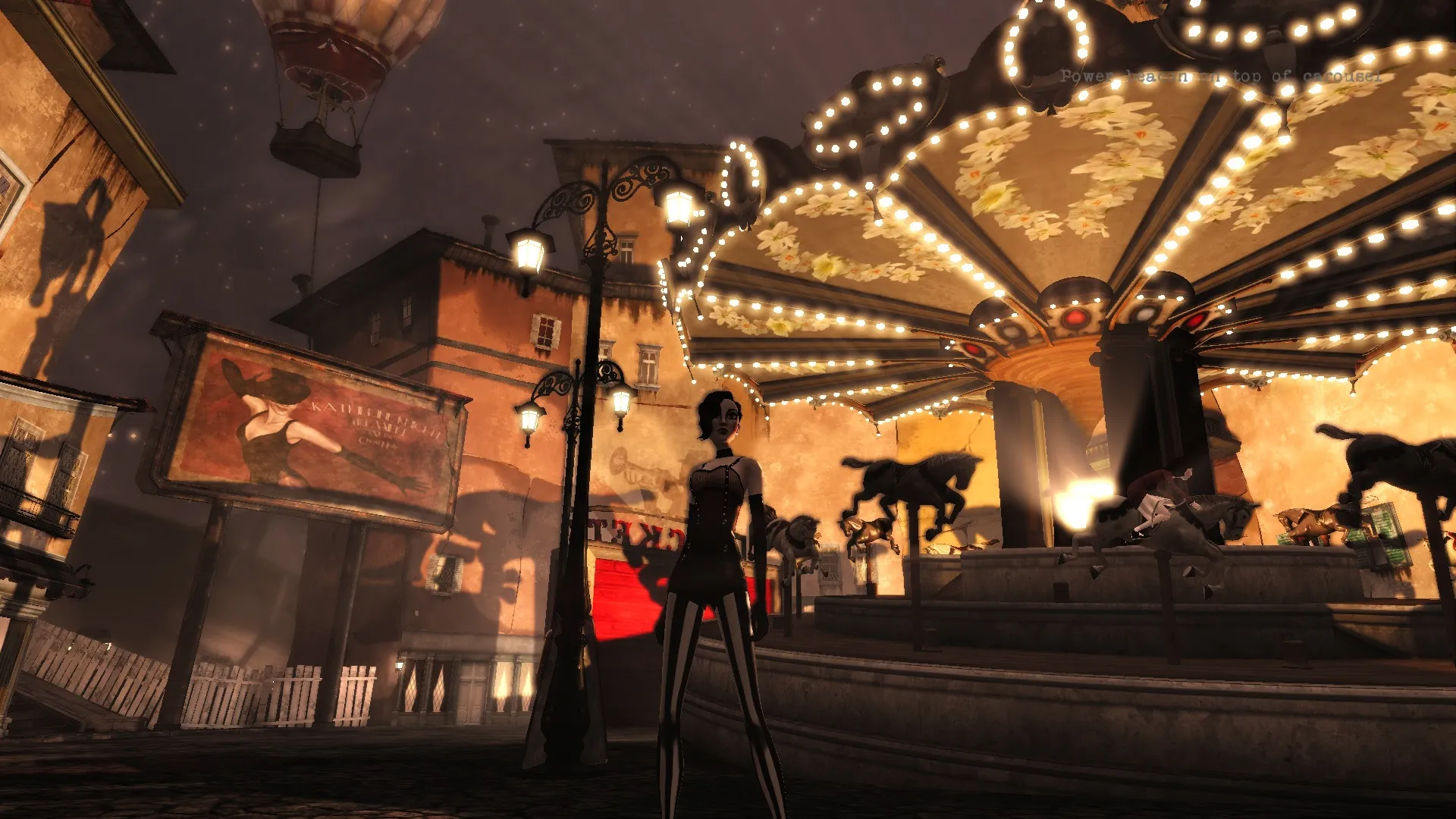 I first played through the E3 demo, which you can read about here, but afterward Compulsion Games studio head Guillaume Provost treated me to a new segment of the game that shows off some of the more advanced puzzle mechanics. At this point in the second act, Didi is looking for her father in the failed circus he set up with money from her mother, Kat. This particular sequence takes place in a theme park pirate ship. Dawn needs to reach an elevated platform to open the gate for Didi, and all I have to use is a box that is much too short to do the trick with the way the ship is designed. Examining my options, I have two potential avenues. I could place the box immediately in front of the light source, which casts a large enough shadow in the wall that would allow me to reach the platform, or I could take the box with me into the shadow realm to put it right up against the wall I need to vault. I choose the first course of action, switching into the shadow realm with a tap of the right trigger, climbing the box outline, jumping toward the platform, and switching back to reality in time to grab the ledge.