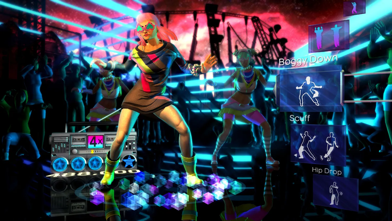 In Break It Down mode, flash cards that feature move names and images of dancer silhouettes are presented on the right side of the screen. These images’ simple-yet-clear designs make them easy to decipher at first glance. I was usually able to guess what each move would entail with one look at a flash card without a demonstration. As the moves make multiple appearances across routines, they become easier to recognize and execute during scored performances. Failing a move in this mode allows you to repeat the motion several times and goes as far as letting you slow down the demonstration to nail your technique. Unfortunately, you’re required to go through the entirety of a song’s breakdown to practice a specific move. I wish I had access to a move bank where I could just focus on moves I was struggling with as opposed to repeatedly going through an entire track I have otherwise mastered.