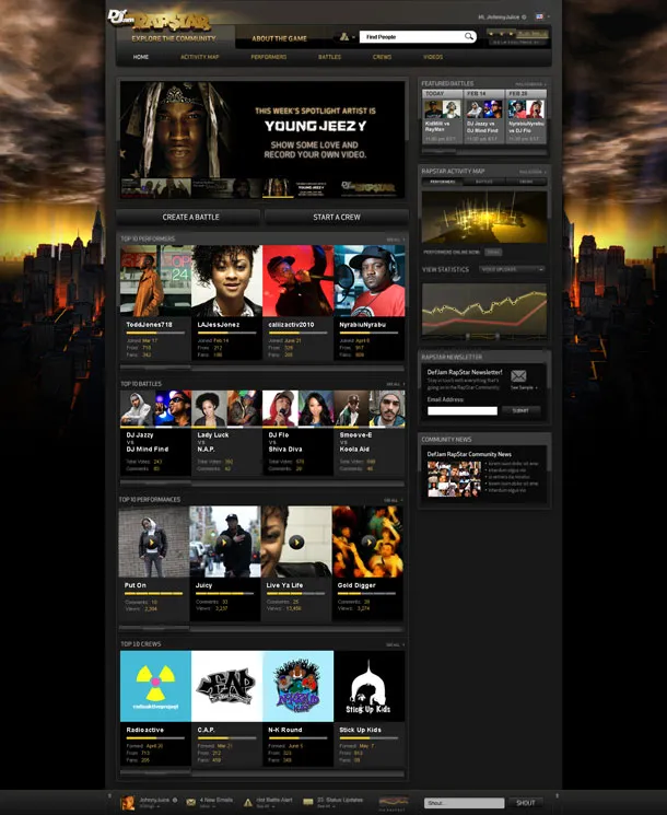 The online component of Def Jam Rapstar offers a meta game of sorts. Similar to other popular social networking sites you’ll be able to add friends, follow your favorite performers, leave messages for other users (friendly or trash talk), and more. Just as you would with YouTube you can browse user videos and rate them accordingly. The cream of the crop will be promoted on the website’s front page for ultimate exposure. You can’t get discovered without proper plugging, so with Def Jam's backing, this seems like a great way to start.