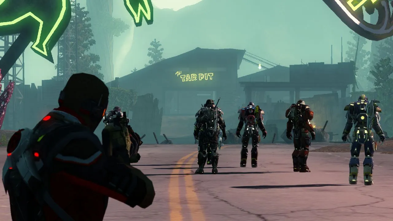 The first part of the demo had a half-dozen players working together on a bug hunt. The area we saw is a partially alien-terraformed San Francisco bay, and a variety of mutated and extraterrestrial creatures threaten anyone who ventures out in the wilds. Using many different weapons and secondary abilities like short-range teleports and energy leashes, the players cleared the bugs with ease, picking up several loot drops for their trouble.