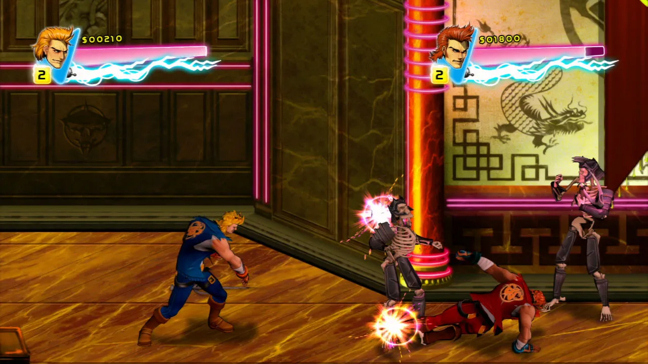 You may think you’re playing a remake as you see your girlfriend Marian get punched in the stomach and kidnapped. As is quickly evident, this is not the case – though the classic Double Dragon references are thankfully prevalent. I don’t want to spoil the surprises of where the wild and crazy story goes, but Neon is full of moments that will elicit fist pumps and laughter and is gleefully free of the constraints of reality. The Lee brothers resemble a more ass-kicking Bill and Ted (of Bill and Ted’s Excellent Adventure fame) with their ‘80s surfer accents and propensity for high fives and air guitar. The main villain, Skullmageddon, is a lovably dorky mix of He-Man’s Skeletor and Teenage Mutant Ninja Turtles’ Shredder.