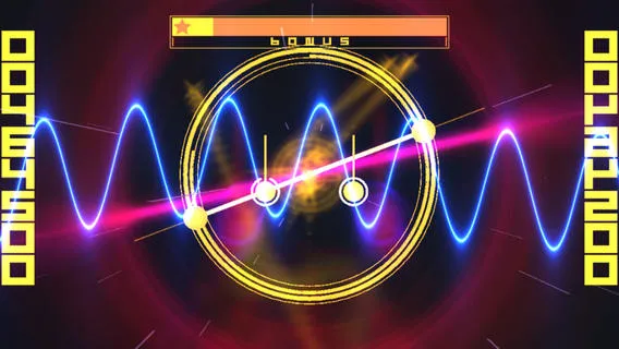 When you start, you’re told to hold your fingers down on two circles on the three and nine o’clock positions of a larger circular playfield. Once they’re both held down, a line forms between the two spots. That beam is the heart of Dropchord. As electronic music plays in the background, dots fade into view. You have a limited amount of time to drag the line over them, destroying them and earning points. Those dots appear in a variety of patterns, which requires you to think quickly and constantly adjust your beam's position and angle.