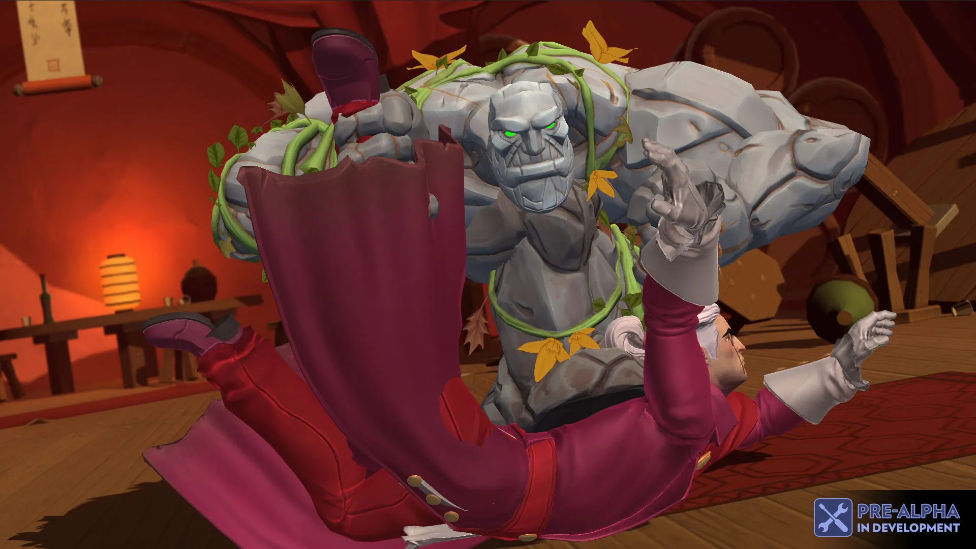 Fantasy Strike only has a four buttons that correspond to simple moves. Specials don't even have complex joystick motions, as they are regulated to a single button press. Getting out of throws, something that is notoriously difficult in fighting games, requires no button press. Letting go of all the buttons lets you escape a grab and perform a counter called a Yomi Counter. These simplified systems allow them to let players get "to the strategy part of the game immediately, in the first minute you play it."