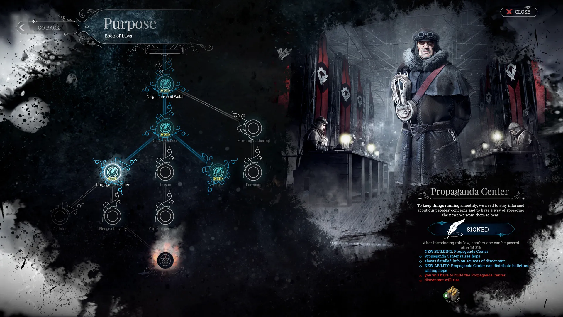The design only falters when a story beat takes away some of that freedom and forces players to choose between two law paths that could lead to totalitarianism or a religious zealotry. You can go down the path of a police state, with propaganda centers and prisons at your disposal, or institute an easily exploitable national religion to instill a sense of hope. You’re never obligated to implement any of the more overreaching laws, but sometimes they are the only way out of a dire situation. I appreciate forcing players to make tough decisions, but the game does that anyway without strong-arming players down ideological paths. Outcomes are potentially more interesting when more diverse governing tools are provided.