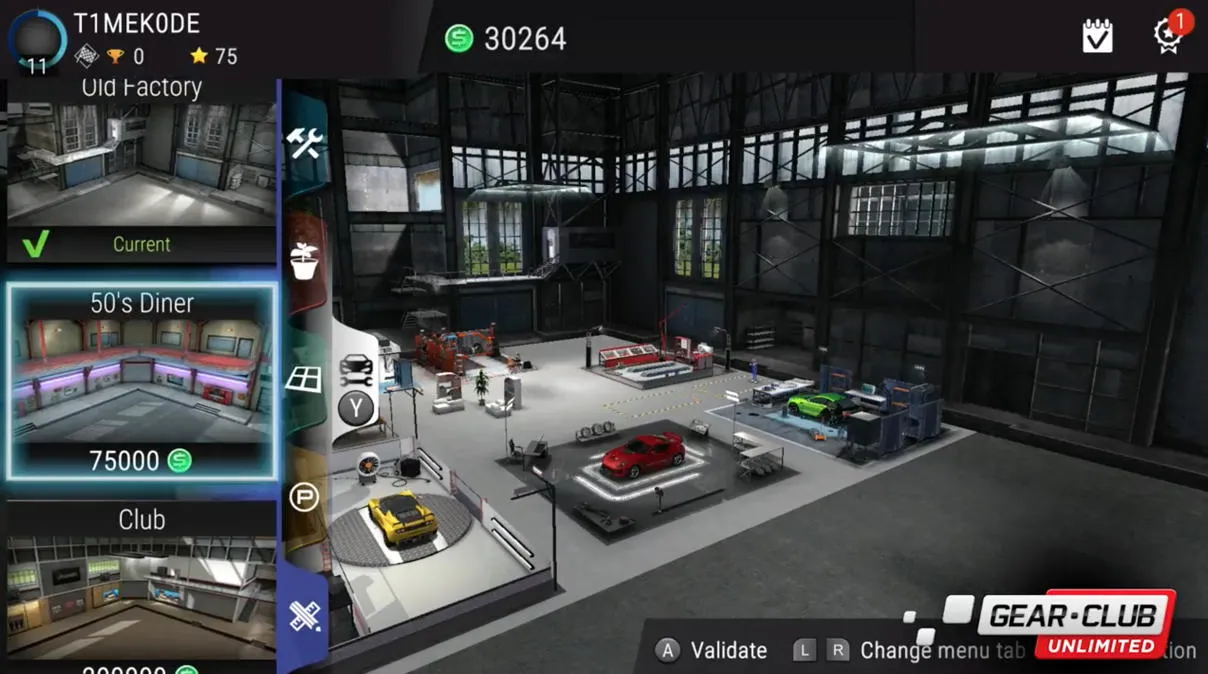 The lynchpin of the experience is the performance shop, which serves as your master garage and HQ where you upgrade your cars. More than a series of menus, I got hooked on physically arranging where the various upgrade bays go (for your engine, tires, etc.), along with cosmetic touches like a coffee machine and couches. This isn't something I would have thought would draw me in, but it's amusing nonetheless. The performance shop reveals how well Gear Club Unlimited handles progression; even though you have to level up the facilities a fair amount to then upgrade your cars' parts, the stars and money you earn through the races come at a steady clip.