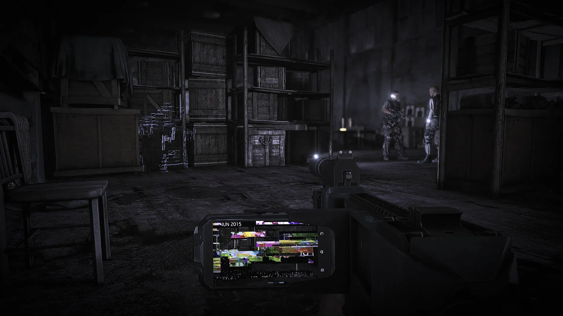 Get Even looks like a first-person shooter, but this is deceptive – appropriate for a story with constant plot twists and winding paths. Yes, you spend a fair amount of time shooting bad guys with silenced pistols, assault rifles, and shotguns. However, you spend just as much time solving mysteries and puzzles with your handy touchscreen phone, like tracking a target’s heat signature with an Infrared monitor. You also walk around observing notes and objects in the environment, tagging them as clues. This aids you in solving not just the mystery of your missing memory, but also a larger mystery at the heart of Black’s journey that becomes apparent as events unfold.