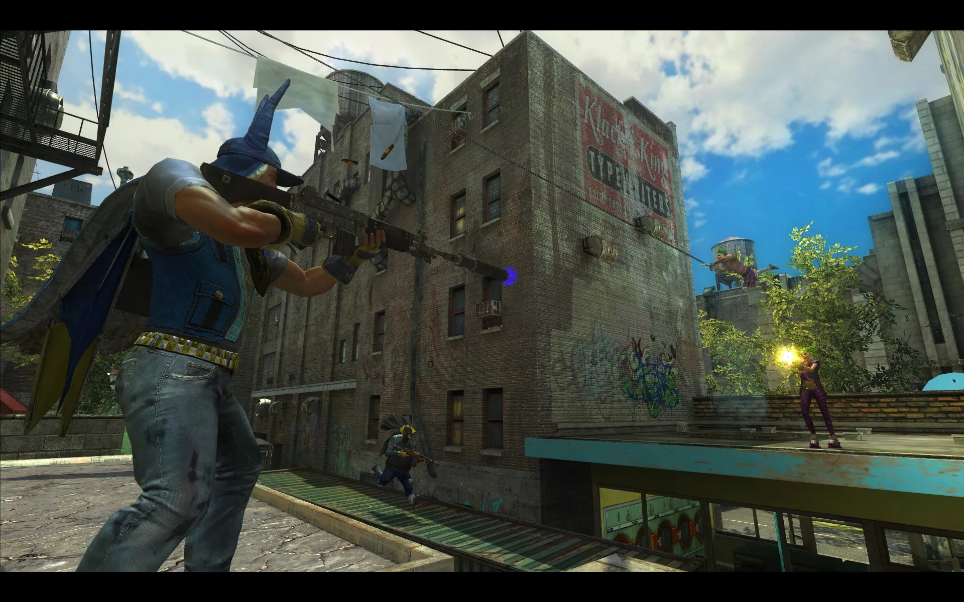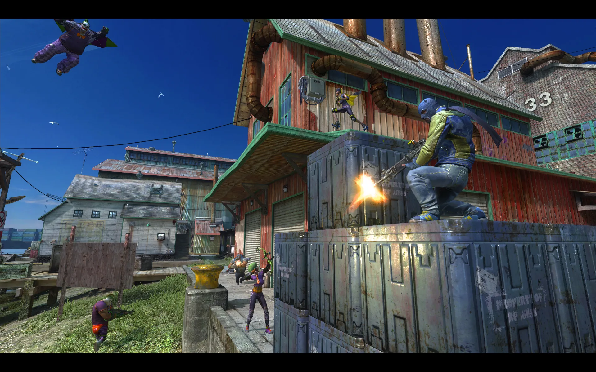 Outside of a training sequence and a collection of single-player trials, this is a strictly multiplayer experience. Batman and the Joker are nowhere to be found in this vision of Gotham; instead there are two feuding teams of wannabes that go by The Batz and The Jokerz. Three online modes are available: Team Deathmatch, Fumigation (a variation of Call of Duty’s Domination mode), and Psych Warfare (a version of Sabotage). While the modes themselves aren’t particularly unique, the weapons, gadgets, and characters add a fun twist to the proceedings.