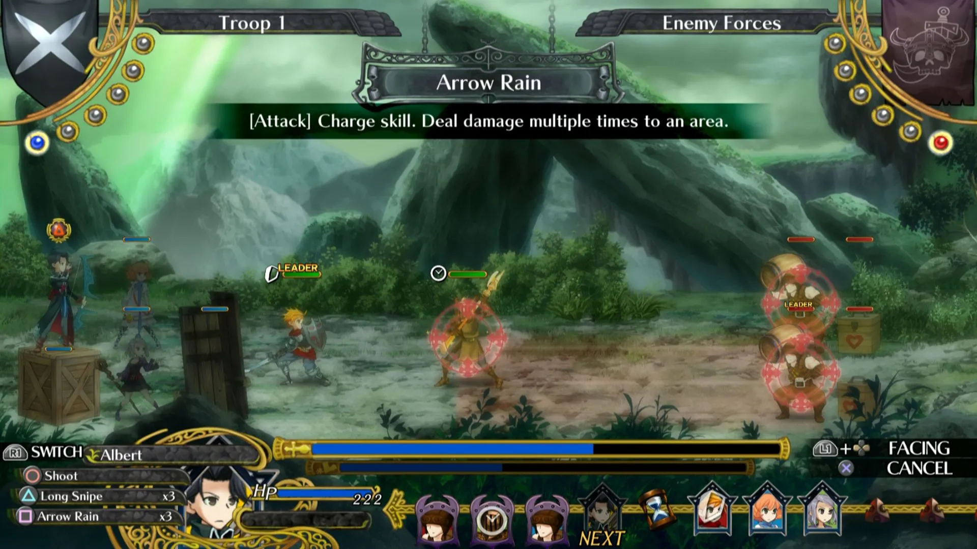 Encounters are a cross between turn-based and action gameplay, forming one of my favorite strategy/RPG battle systems of recent years. Every character has an action gauge for movement and attacks. For melee characters, you want to repeatedly press the corresponding button to combo up attacks when near enemies. For ranged characters, it's all about timing and hitting the attack button as a meter displays on the enemy. In both cases, characters can knock opponents in the air or hit them into objects (or even each other) for more damage. Using the environment to your advantage is fun, and I like the skill involved in how you execute your attacks. Battles have surprising variety in how they play out, and there's nothing like lining up an attack and having it kill multiple enemies as they fly into each other. But also beware of your own characters' positions, because they can take friendly damage. Sometimes it might mean letting a party member get severely wounded for the greater good.