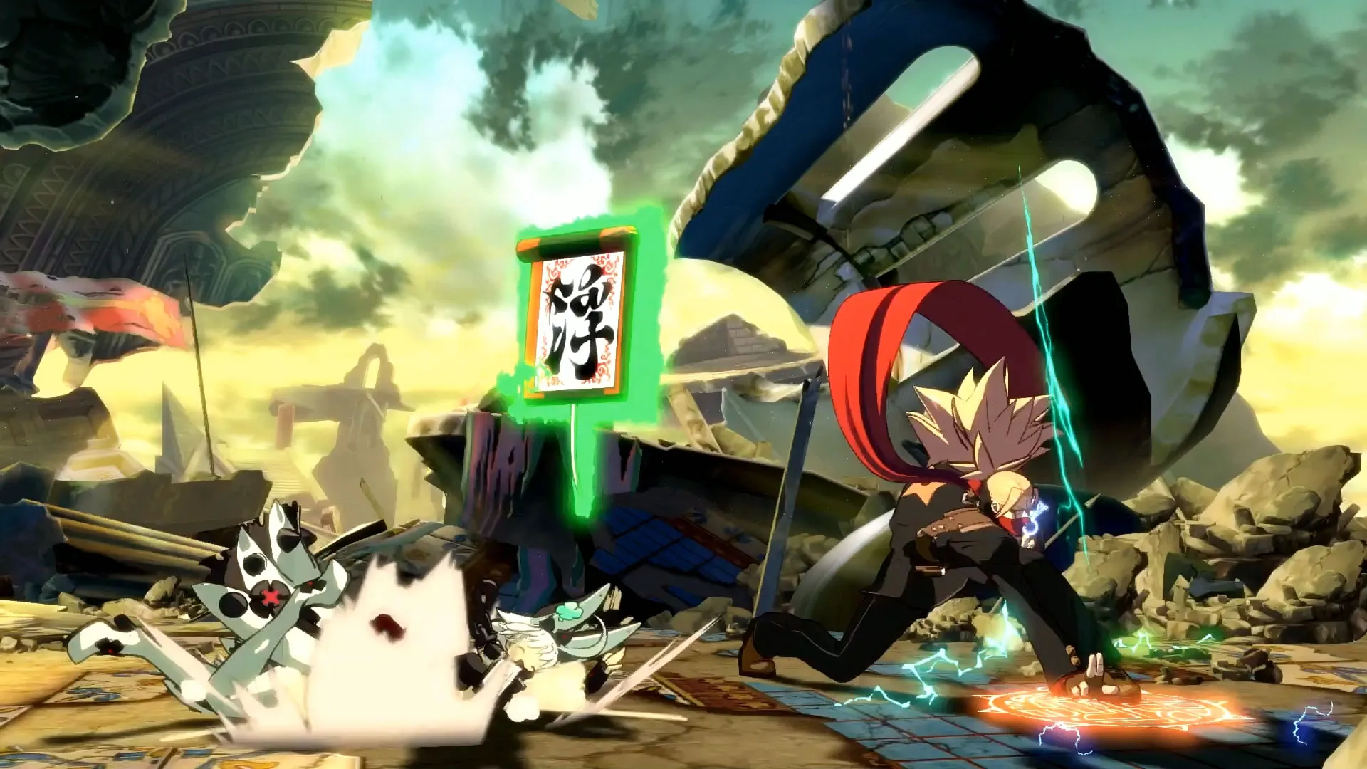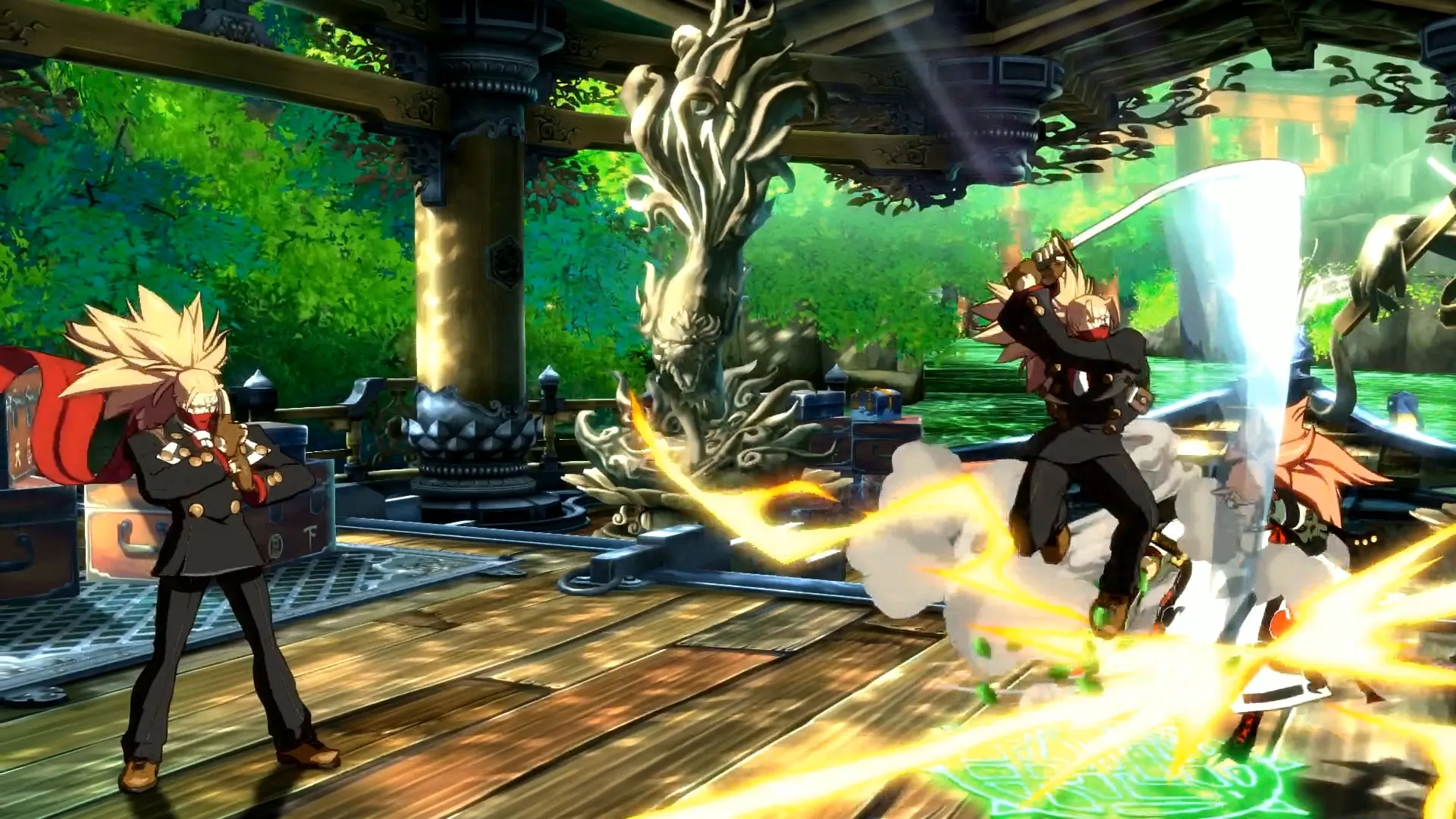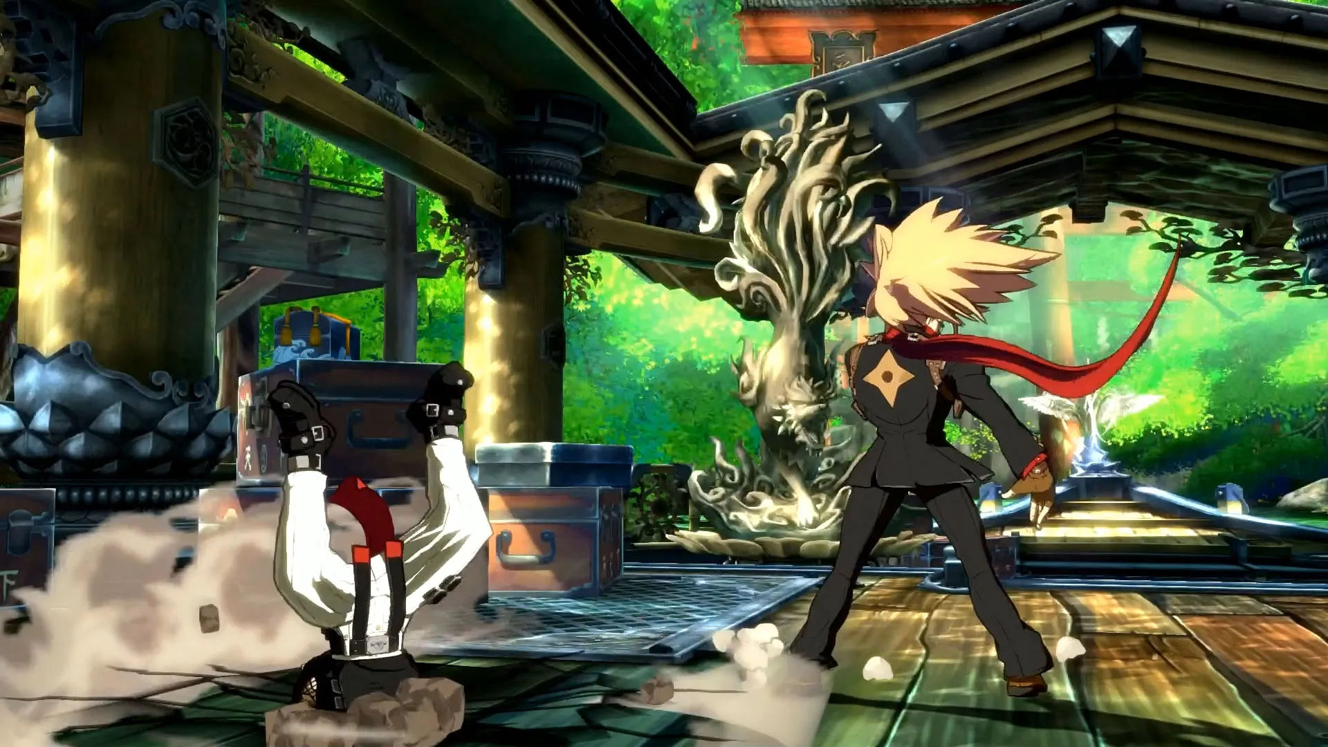 Rev 2 adds two new playable characters to Xrd: Guilty Gear veteran Baiken (a gruff samurai with an eyepatch) and Xrd newcomer Answer (a ninja who doubles as a secretary). Both characters fit in well with the current cast’s diverse set of tools. Baiken can parry attacks and turn them into opportunities for counterattacks. She also fires a short-range grappling hook that can force an opponent into a guessing game even when blocked. Answer throws cards and floating scrolls that let him teleport and move through parts of the screen other characters can’t, giving him some cool mobility options. Both characters also have nice touches that give them flair: Baiken stands up one leg at a time, putting her hand on her knee in an “I’m too old for this” way, while Answer is constantly talking on his magic cell phone, too busy to fully commit to fighting.