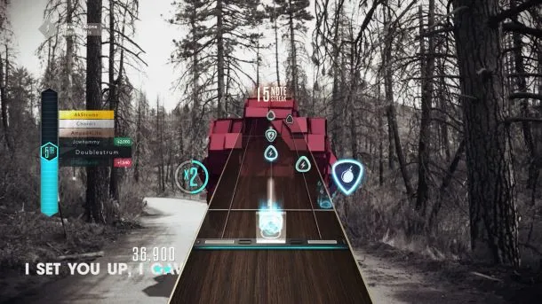 TV mode is a much more complicated beast. This online-only experience offers two streaming channels of music videos. When you drop into the song and start playing, your scoring is measured against nine other live players of related skill. Streaming channels are an interesting idea, but if the current programming is metal and indie tracks, and all you want is ‘80s rock, you’re left frustrated.