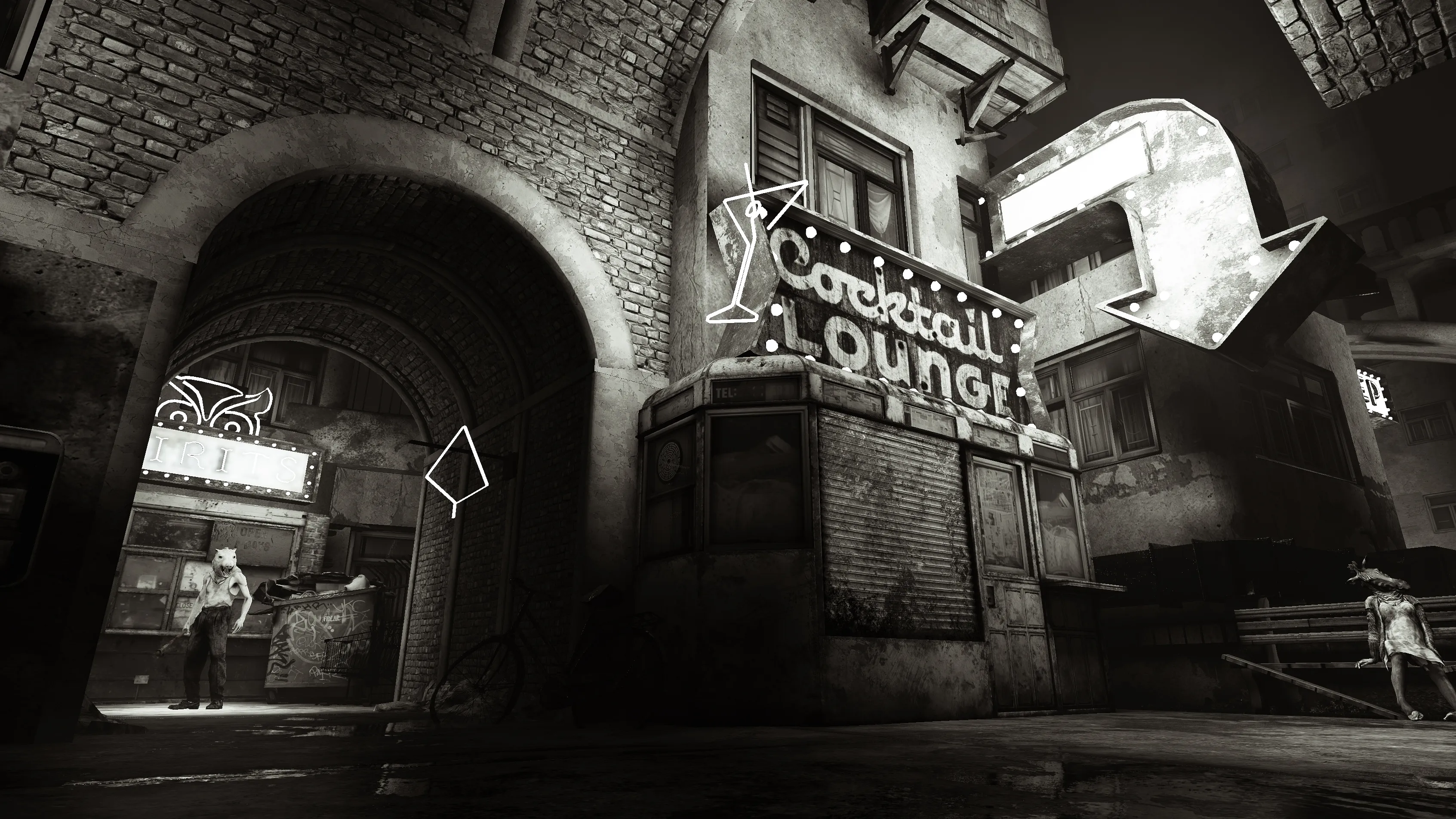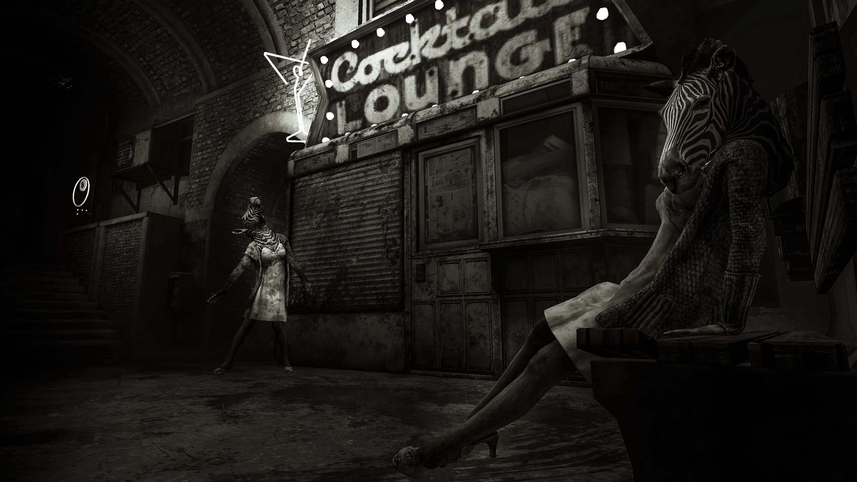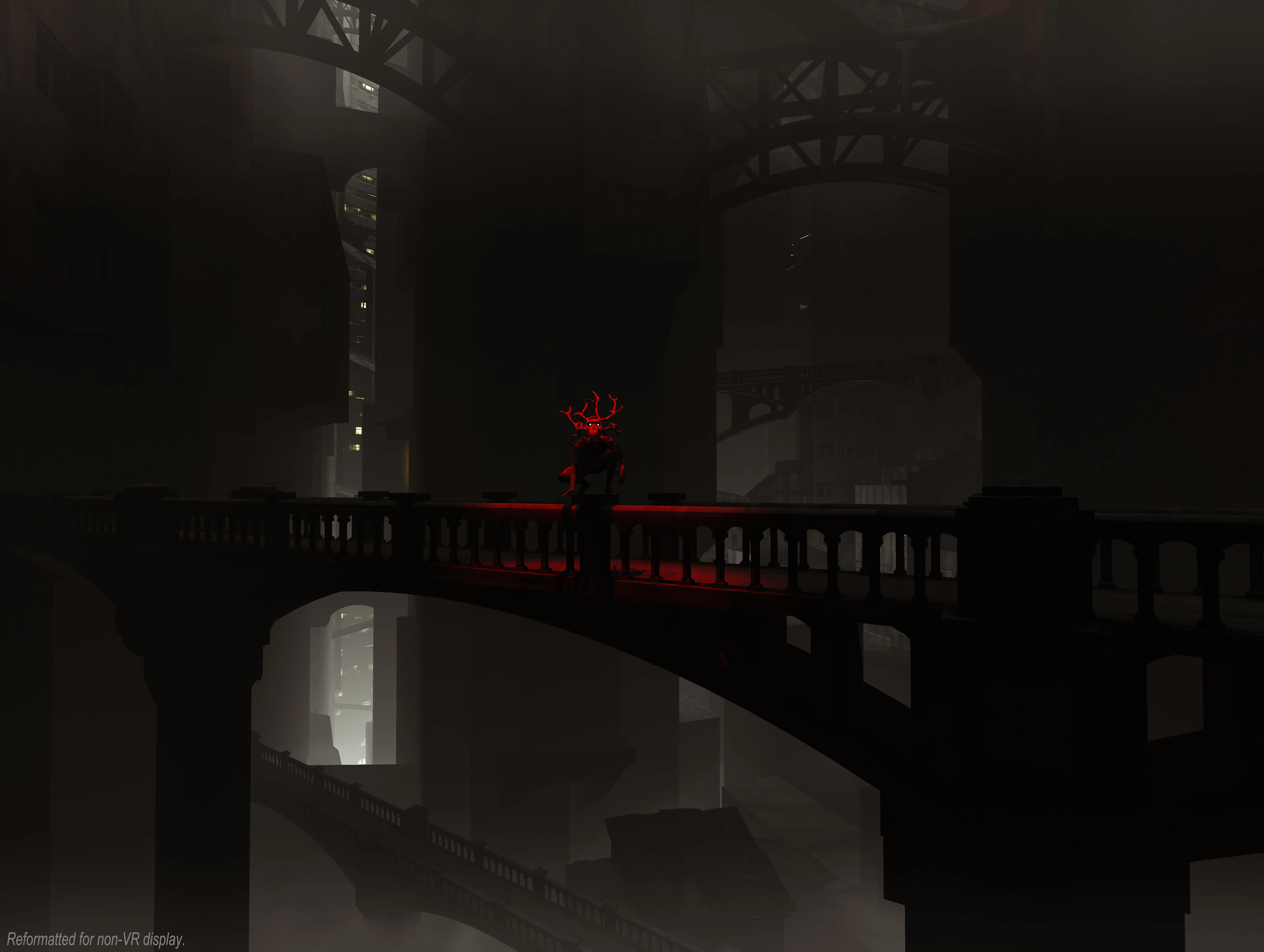Most of the environments are quiet and project a feeling of wistfulness, but a few of them are oppressive and garish. At one point, I stumble into a red-light district in the middle of an underground city, with all the seedy businesses and activities that entails. Its residents, who wear wolf or pig heads atop soiled tank tops and dresses, don’t seem to notice me. As I stumbled around, the limited viewing angle of the headset meant I was always looking over my shoulder, waiting for the next jump scare.