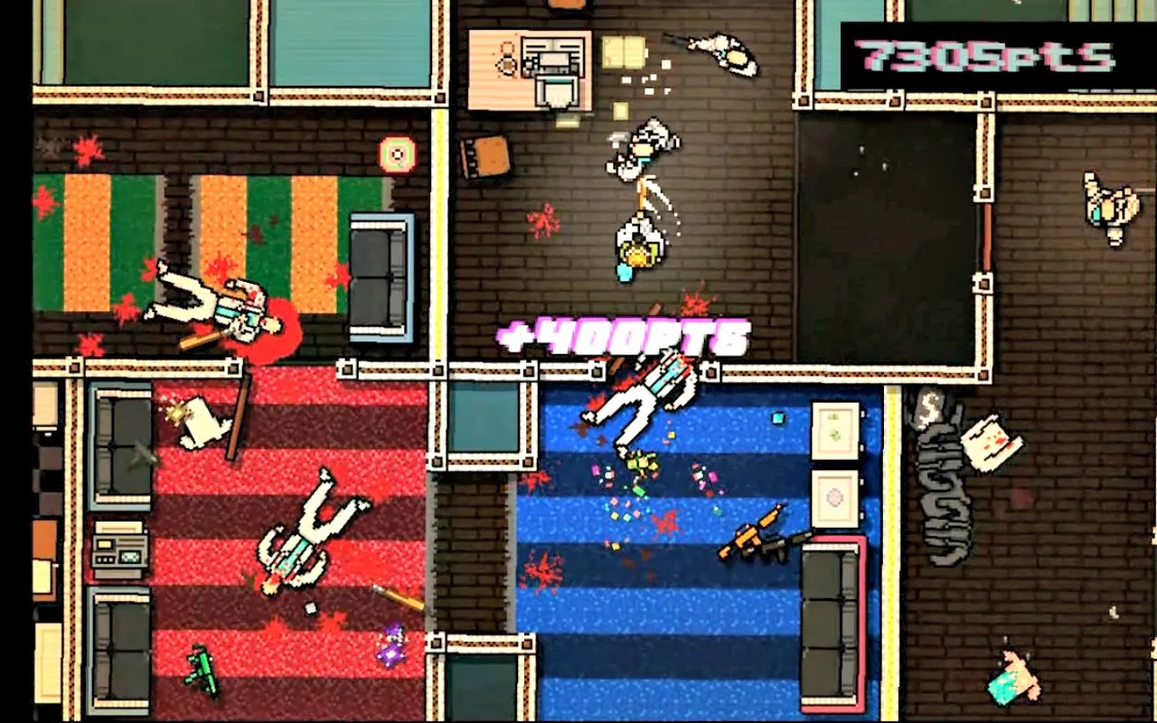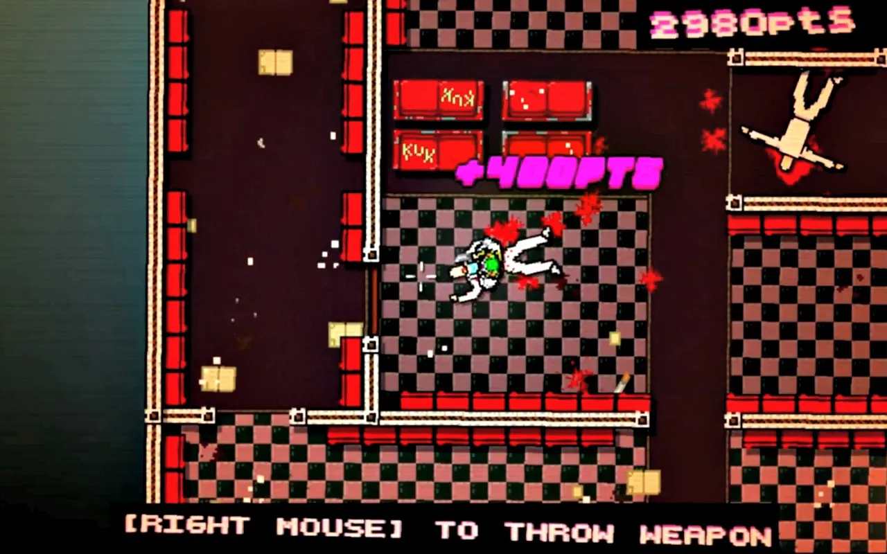 Moving slowly through rooms and silently eliminate your enemies with bats, crowbars, and knives occasionally pays off, but guns make much more effective killing tools. Unfortunately, a single gunshot will send a stream of enemies running into your room to investigate, so you need balance, speed, and caution. Once you find your flow, Hotline Miami opens up. Systematically working your way through each room and murdering every thug is a harrowing experience, but the faster your move, the more reckless you get. And the more reckless you are, the more likely you are to end up a bloody stain on the floor.