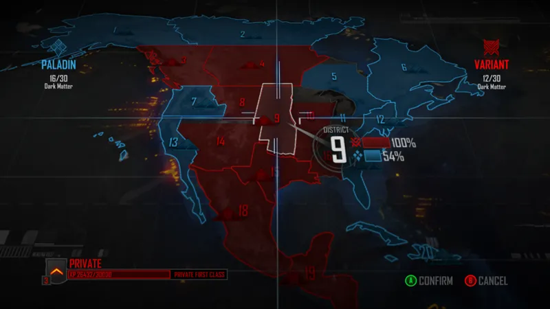 Hybrid’s plot synopsis is cryptic: An alien race has touched down and competes with humans over a sacred resource called dark matter. You can join up with either the Variants or Paladins, factions in direct competition for dark matter pockets scattered across an expansive, Earth-shaped map. Both teams are locked in a power struggle to control areas of the map. No stage is off-limits, but selecting to battle in a hot zone offers additional experience points. The map has a surprising amount of depth as the choices impact doing what’s best for you (extra XP) or what’s best for your faction (capturing a valuable area). This feature is even more intriguing because you’re entrusting your teammates (strangers) to make the right call. In a world where many look out for number one, Hybrid captures a realistic choice with every match you play, which was my favorite part about the game.