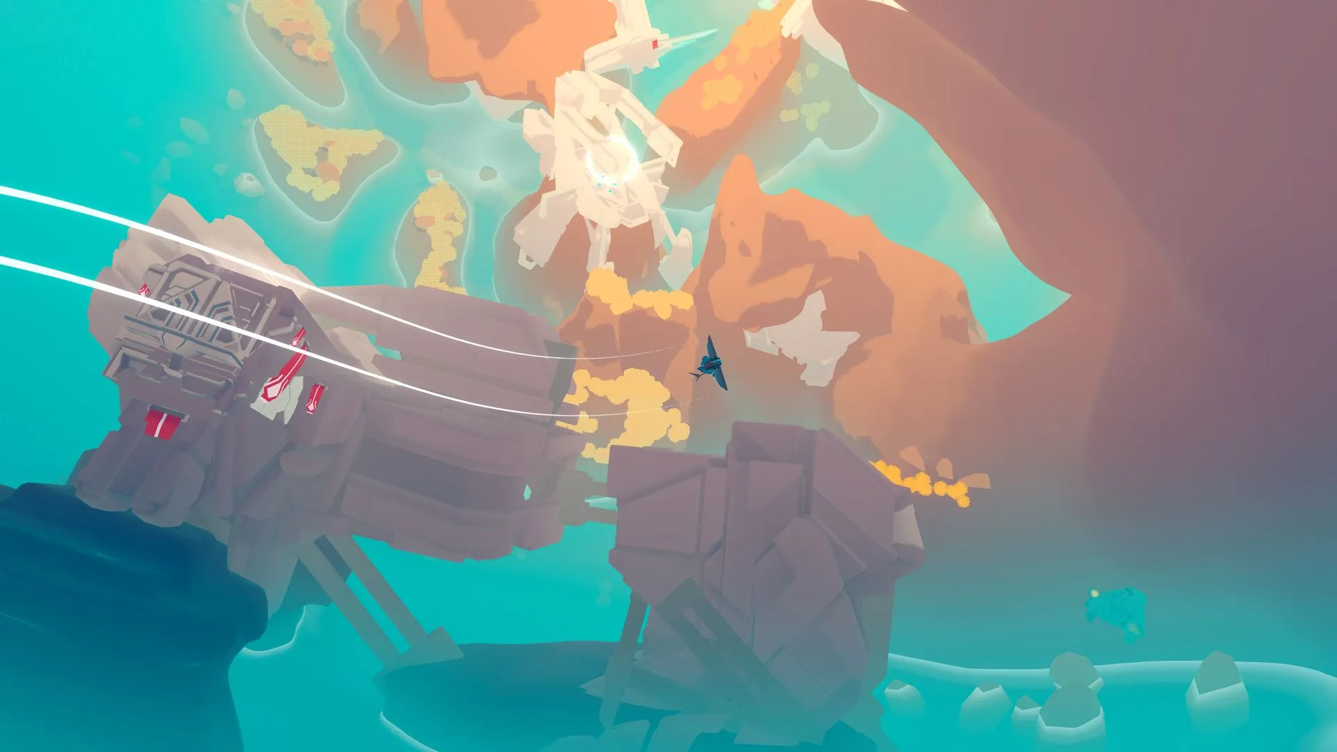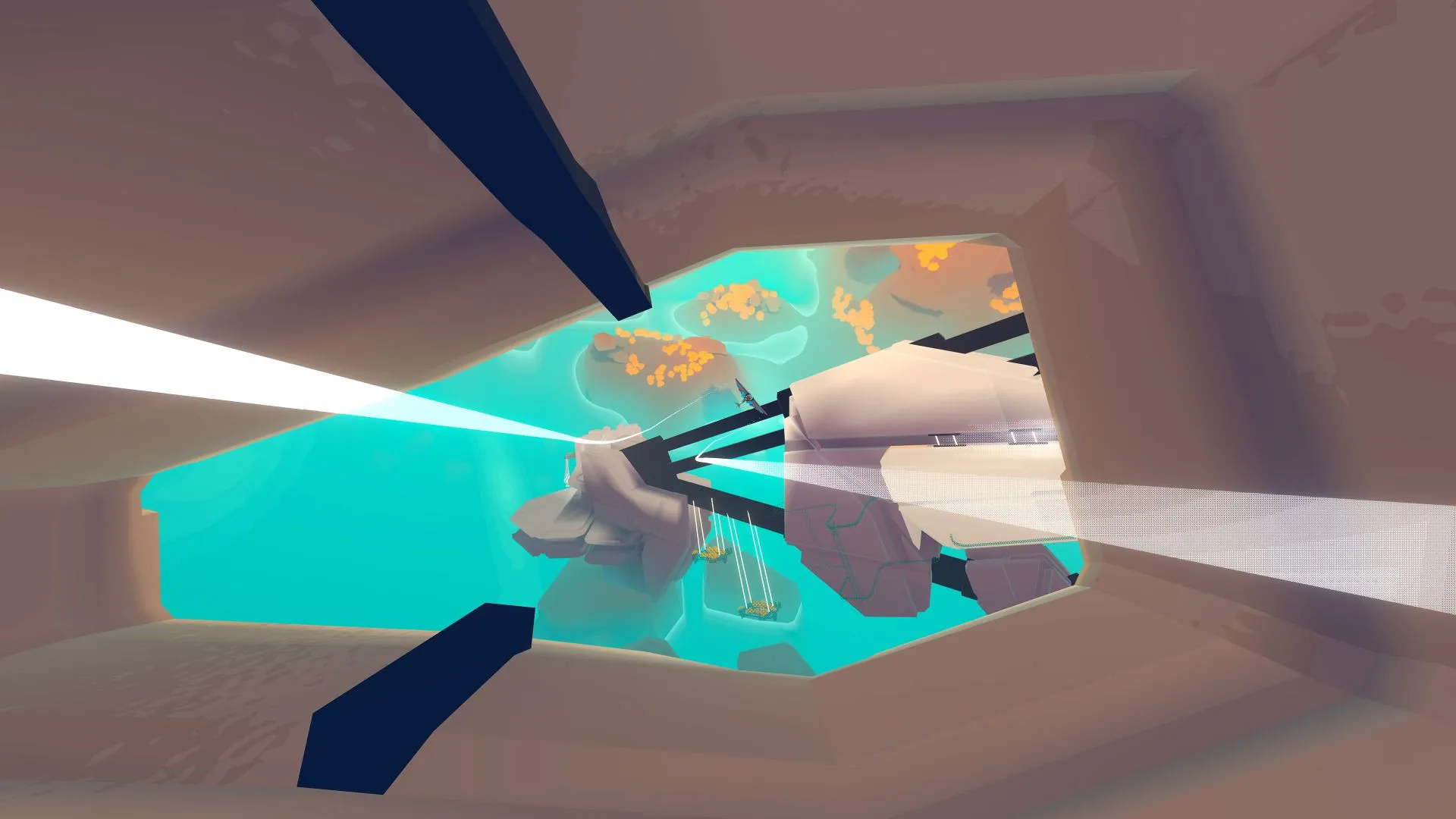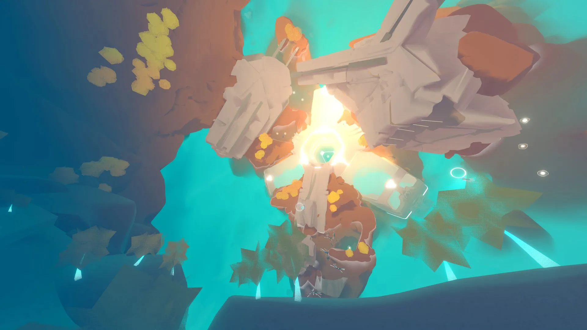 Players assume the role of the Cartographer, a sentient exploration drone reanimated by an archeologist, and then fly and swim through a series of inverted planets long abandoned by their rulers, awash in subterranean seas, craggy stone faces and shining beacon lights filled with cosmic colors. As players guide, maneuver, and crash their plane through these planets, they collect Relics and bits of exchangeable energy called Wind, and start to piece together where the planets’ inhabitants went, and why. Though the underground take on flight-sim gameplay can be disorientating at first, it becomes easier as you get into the groove of each plane’s speed and responsiveness.