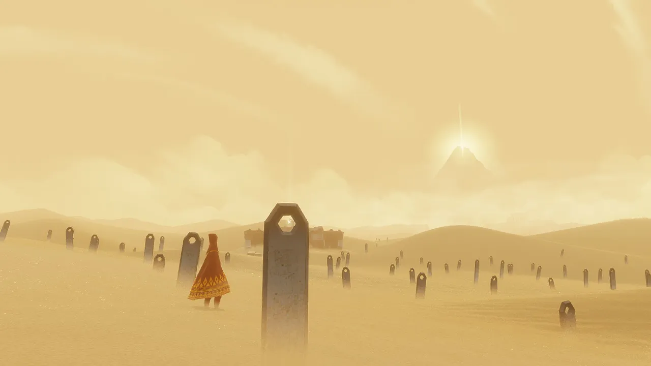 As the journey unfolds, a cryptic tale reveals both a backstory to the world and its many ruins, and some semblance of who you are and why you’re traveling to the mountain. Without words or text, this narrative remains up for interpretation through its conclusion and is likely to frustrate those looking for more concrete answers. The real story is about the places you visit as you travel and the sense of isolation the game evokes as you go.
