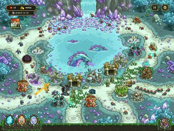 The most impressive feat in Kingdom Rush’s arsenal remains the intricate balance work that makes each level so tricky. The pacing of enemy arrivals and how that timing interacts with your own upgrades is immaculate, and unlike many tower defense games, constant attention and use of special powers is necessary to garner perfect runs. The clever design work sits beside some delightful creature and world design, filled with fantastical creatures and magical locales.