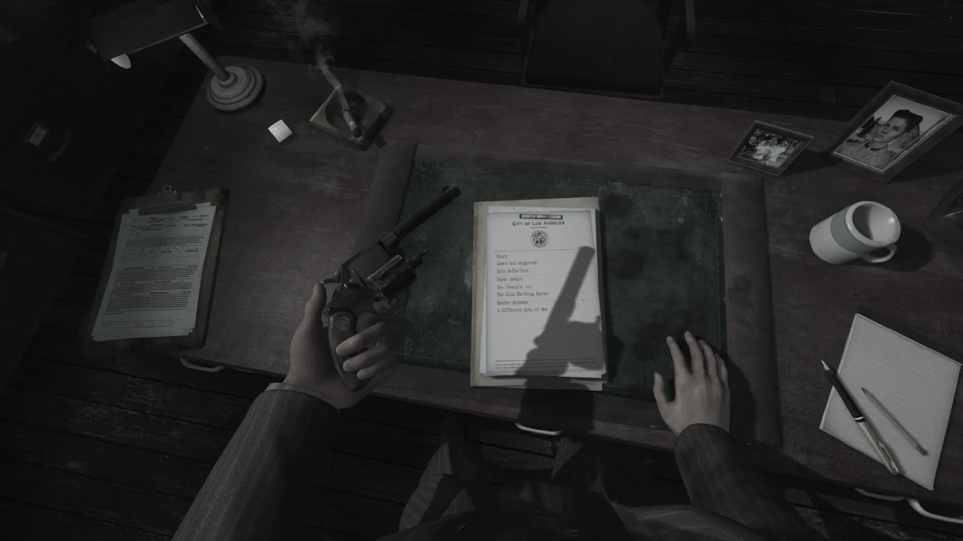 L.A. Noire: The VR Case Files doesn’t follow the narrative of Cole Phelps’ rise up the LAPD ranks. Instead, it streamlines the experience into a collection of seven cases pulled from the original game that lend themselves best to the VR format: Upon Reflection, Armed and Dangerous, Buyer Beware, The Consul’s Car, The Silk Stocking Murder, Reefer Madness, and A Different Kind of War. Unlike the original game, which used a third-person perspective, you experience each of these cases from the first-person perspective of the ambitious detective.