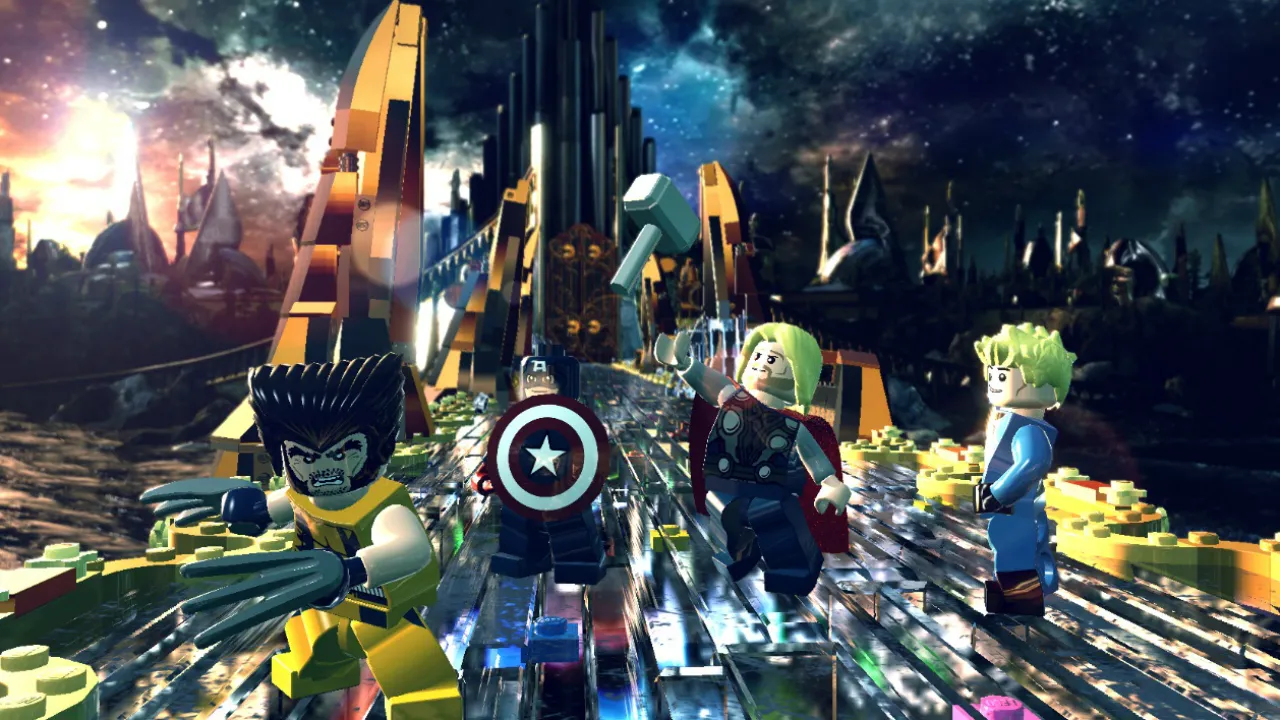 Traveller’s Tales is through tinkering with the series’ core gameplay, and now it’s all about refining what works. Levels take you through iconic areas like Stark Tower, Asgard, and the Savage Lands, where your heroes face off against a who’s who of villainy. The battle against Sandman in the opening level is of a size and scale that would normally be reserved for end-game boss encounters, and it only grows from there. I won’t spoil Doctor Doom’s endgame is, but he’s in cahoots with one of the universe’s biggest threats.