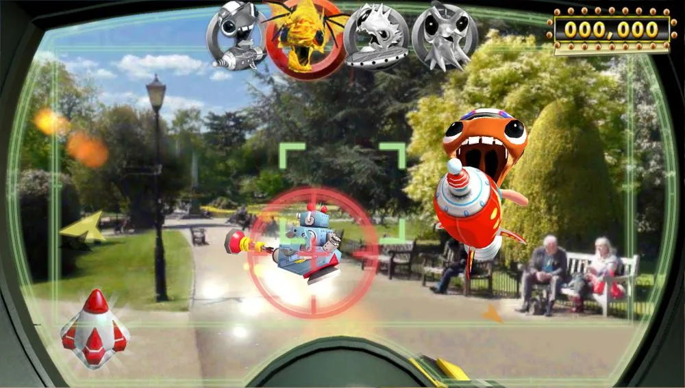 Bots Blast – This simple shooter uses a combination of the gyroscope and the NGP camera to create a cartoony shoot-em-up set in whatever location you’re actually in. Alternate reality! It drew a lot of comparisons to the 3DS game Face Raiders, which I guess isn’t so bad.
