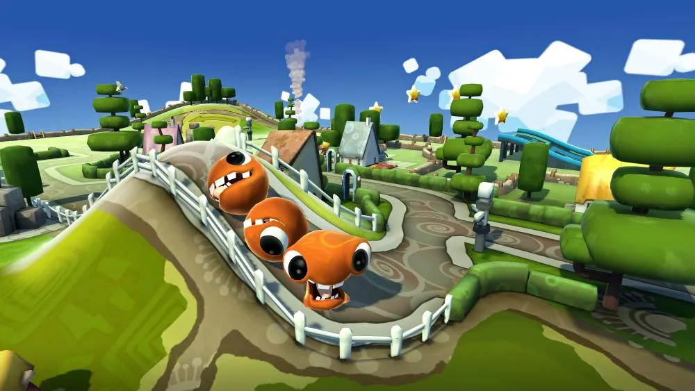 Roll Control – This mode is an extended and improved version of what I originally saw months ago. By pressing your fingers against the rear touch pad, you cause the ground to rise into hills, sending the ball-shaped deviants in this game into motion. The main goal seems to consist of rolling them around the level to collect stars and find a goal.