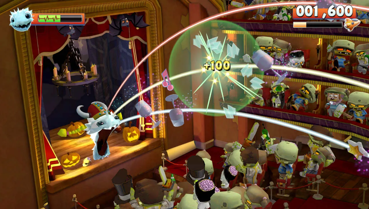 Objectives are dull (usually variations on “collect stuff” or “race against the clock”), and the gameplay is painfully shallow. I was initially impressed by the variety of activities, but the second half torpedoes that by constantly recycling minigames. Even worse, the most frustrating ones tend to be the repeat performers, like steering a spaceship while being chased by a giant whale robot. While I had trouble with some of the controls (especially those involving tilting), most of games handled their unconventional inputs well.
