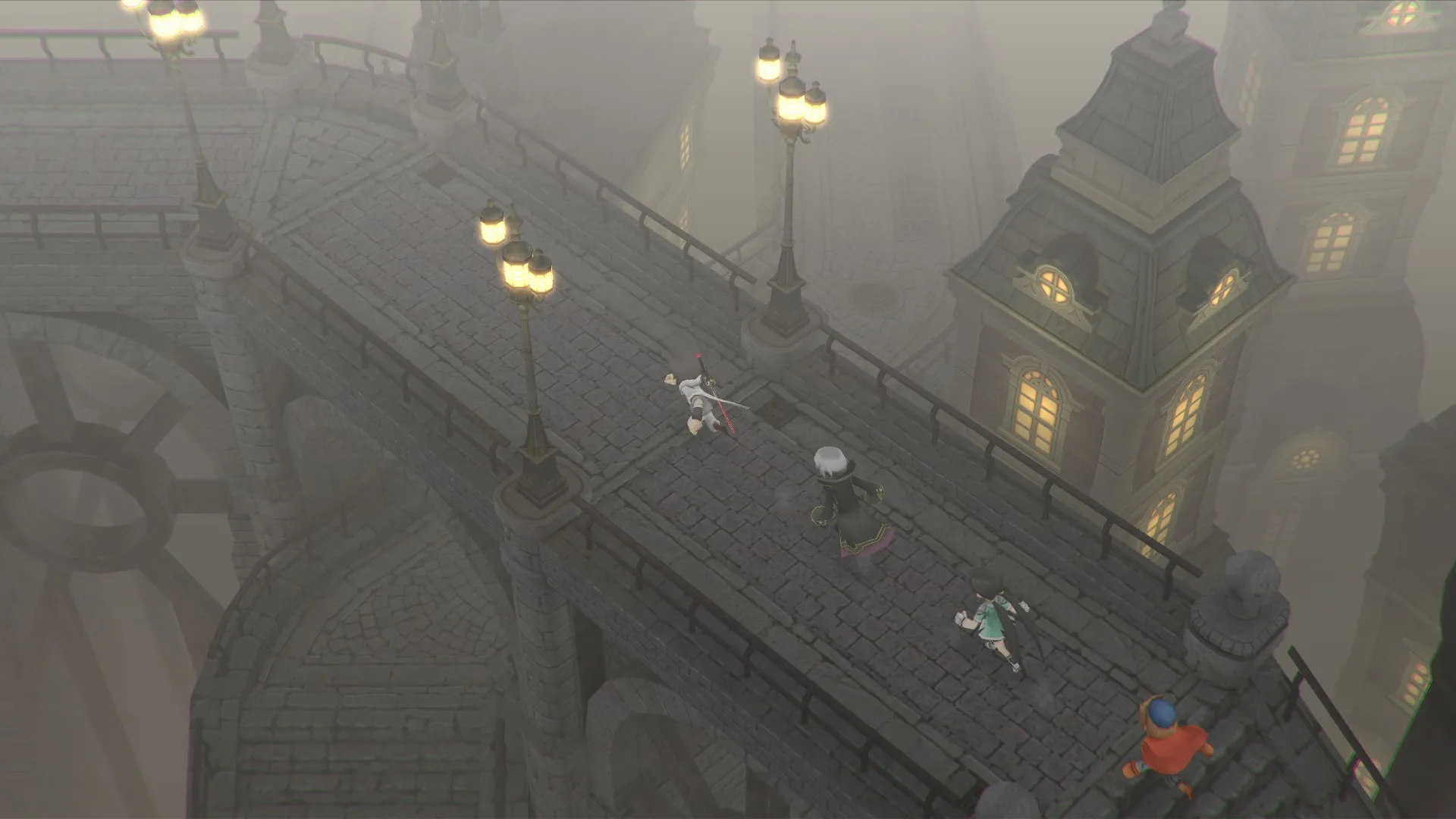 I am Setsuna was unified by snowy visual theme. Though the icy surroundings were consistent and often beautiful, they did not offer much variety, and many areas and dungeons felt the same. The environments you visit in The Lost Sphear will offer more diversity, since the world is composed of different cultural regions. For instance, one is based on machinery, while another is focused on magic. Even so, Hashimoto tells us that the imagery of the moon is still an consistent visual theme tying the game together.