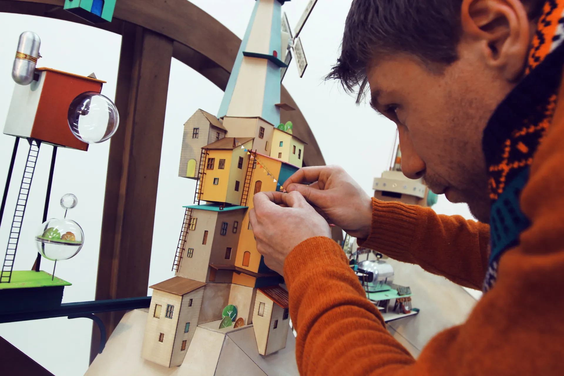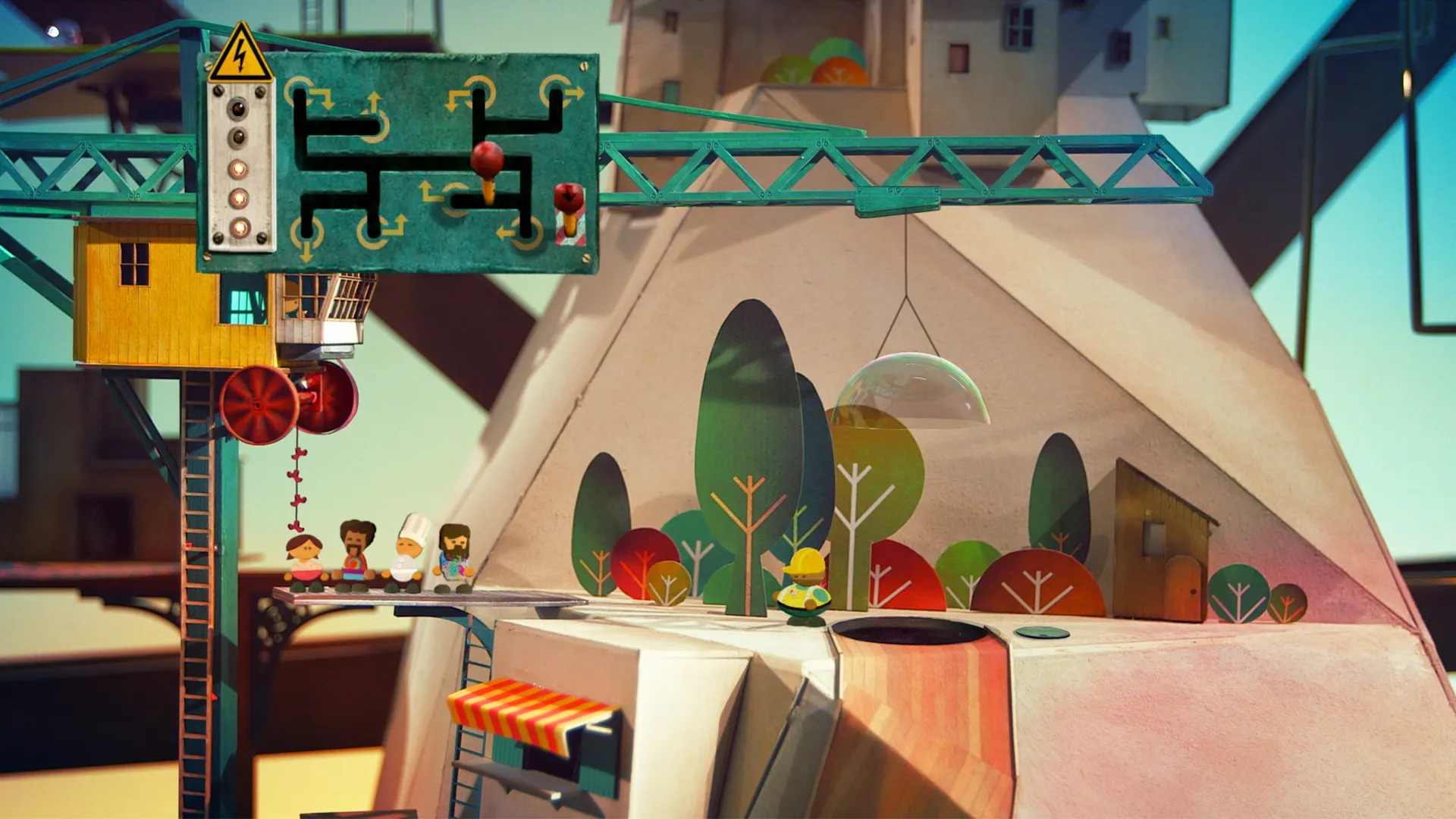Part of what makes Lumino City so stunning is that all of the backgrounds (even the moving and rotating parts) were built by hand. Everything looks like you could reach out and feel the ridges on the cardboard, or tug at the yarn stringing everything together, because these structure actually exist in a studio space somewhere in Camberwell, London. The movements from scene to scene also showcase an expert understanding of the importance and use of excellent cinematography. I often moved from location to location just to see the camera pan around the structures.
