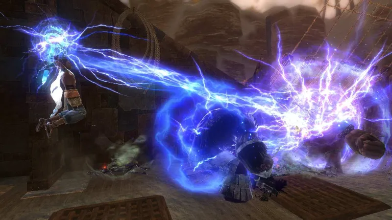 Enemies in Forsaken Kingdom are anthropomorphic tar-covered creatures that presumably were once people themselves, an element we expect will later be explained through the game’s narrative. You can fight these enemies using combo attacks, or more effectively stealth attacks by creeping up from behind. As previously mentioned, you can also send Majin after swarms of enemies once it gains enough strength. If both characters are in battle, you have to keep an eye on them both. If enemies surround Majin and begin to climb the giant, it’s up to you to defend your partner and fight them off. Though these mechanics would lend themselves well to co-op play, Namco tells us the game will strictly be single-player to help the player build an emotional attachment to both characters.