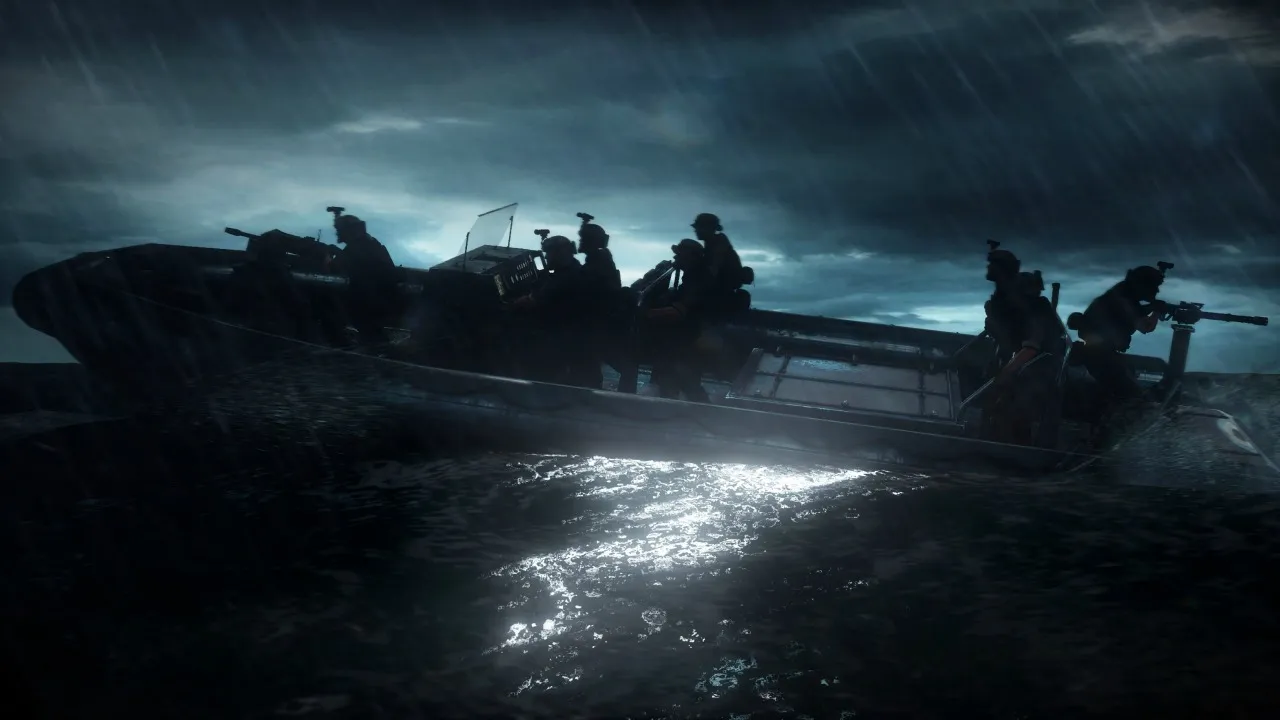 With the hostages secured, the team begins the extraction sequence, which involves hopping on board a boat and manning the turret while the driver speeds through the flooded streets and falling trees. All the while, the player takes out enemies positioned on rooftops and billboards -- your standard first-person shooter fare. Once the city is cleared, they attach the boats to chinooks and fly into the sunset.