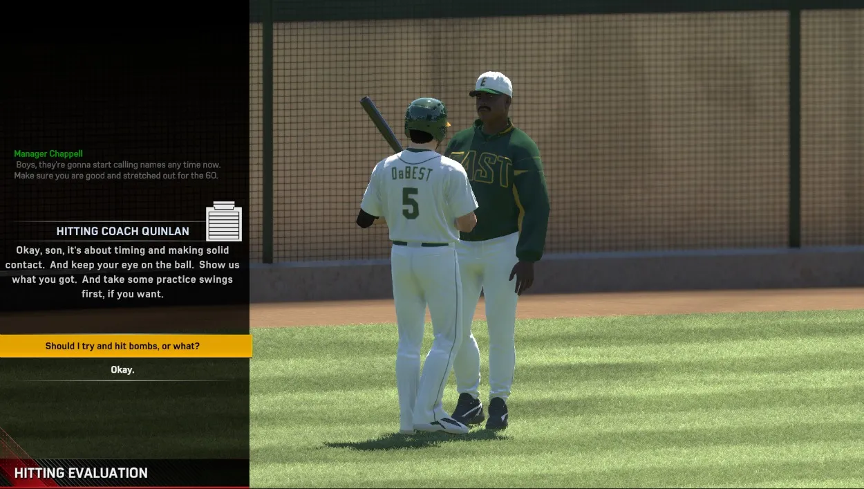 Developing an up-and-coming Major Leaguer in Road to the Show now unfolds through a documentary-like story. Outside of little interactions that define your personality through choice, the narrative didn’t sync with my player’s performance, or deliver many points of interest. I belted 40 home runs in my first two months in double A, and my team didn’t promote me. A second playthrough in those two months produced almost an identical arc. The story doesn’t ruin this mode – the player development and on-the-field play are still great – but it also doesn’t enhance anything. Yes, it’s fun to be a jerk to your coaches, but you aren’t given much feedback as to how that is affecting your team or your future on it.