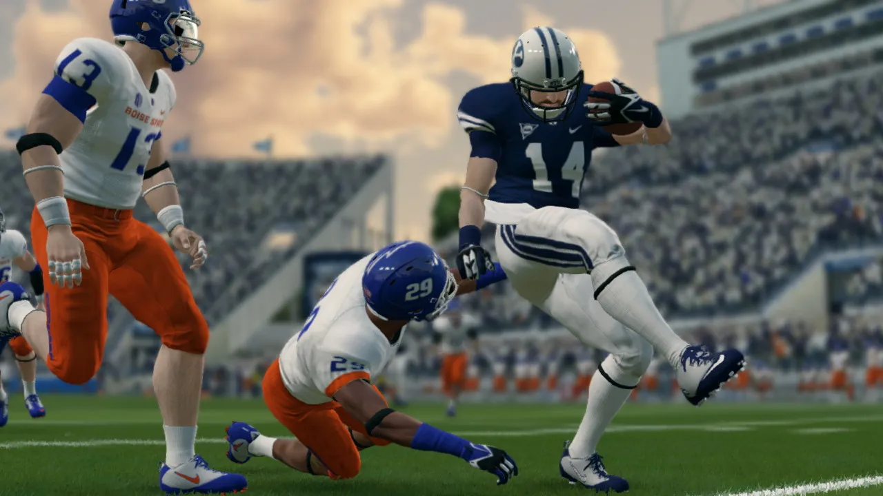 NCAA uses a revamped version of the Infinity Engine from Madden NFL 13, and while some of the post-play pratfalls and more outrageous moments have been cleaned up, you still see inconsistent collision results between players and a lack of smoothness. The new interplay between the ball carrier and his blockers is a step up, but there are times when you are guided around them and others when there's nothing you can do to get around them.