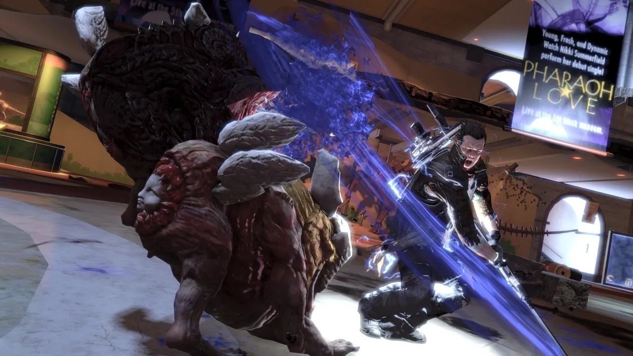 The E3 2011 demo at Konami’s booth involves Bryce running around killing monsters with his scantily clad female partner. Bryce has a pistol and SMG at his disposal, one attached to each of the controller's triggers. If an enemy bites off Bryce's hand holding the SMG, you’ll be left with just a pistol. At this point in development the aiming mechanic feels very loose, and I had a hard time lining up the dual reticules and gunning down enemies. My dubious marksmanship drained ammo in no time, so I switched to Bryce’s blade. Holding down a button turns allows players to control Bryce’s sword swipes with an analog stick. Move the stick, up, down, side to side, or diagonally and Bryce will unleash a volley of swipes. The swordplay was entertaining when I got a handle on it, but still sloppy.