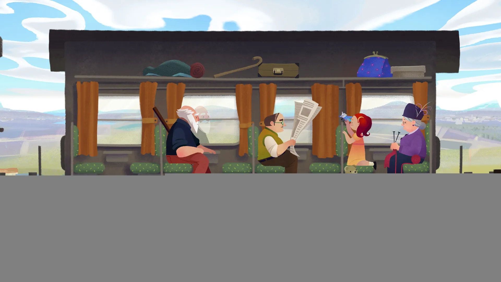 The titular old man’s journey is presented as a series of colorful and animated landscape paintings that feature a diverse array of environments. You navigate places like a town, a harbor, and a waterfall with a point and click (or touch, if you’re playing on mobile) interface. Each environment has a number of gags that you can discover by touching objects – like a cat that darts from rooftop to rooftop, or bells you can ring. These little details make every place feel even more alive, which is impressive given how each location is lovingly rendered in a beautiful art style. The stellar soundtrack also changes from scene to scene, giving each place its unique melodic delights.