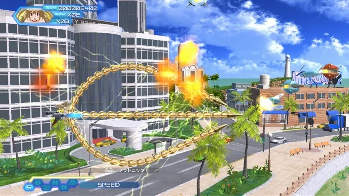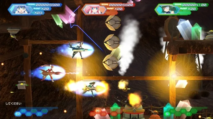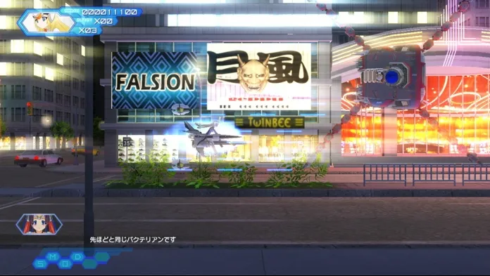 I am struggling to find anything redeeming about this game. The characters are well drawn in that generic, indistinguishable anime sort of way. Some of the music could be described as upbeat, sometimes catchy techno, which is sort of a compliment. There is a story, but it is all relayed through tiny subtitled Japanese dialogue that appears in the bottom left of the screen. Side-scrolling shooters violently demand the constant attention of the player, so unless you have a friend reading the subtitles out loud to you, it’s very unlikely that you will catch anything that scrolls by.