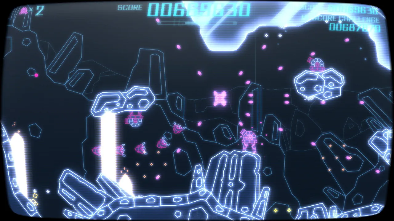 Though the gameplay is familiar, the presentation is up to the high standards Q-Games is known for. A fantastic soundtrack of chilled-out hip-hop electronica keeps pace with the onscreen action. Visuals are designed to echo the arcade cabinet games of yesteryear, even down to a rounded tube edge to the screen and vector-style graphics. The game resorts to “glitches” in a later level as the system seems to try and cope with how awesome you are at the game. Everything is pixelated and drawn in only a few colors at a time, so the blues and reds really glow and pop out from the black backgrounds. The entire effect is striking and nostalgic.