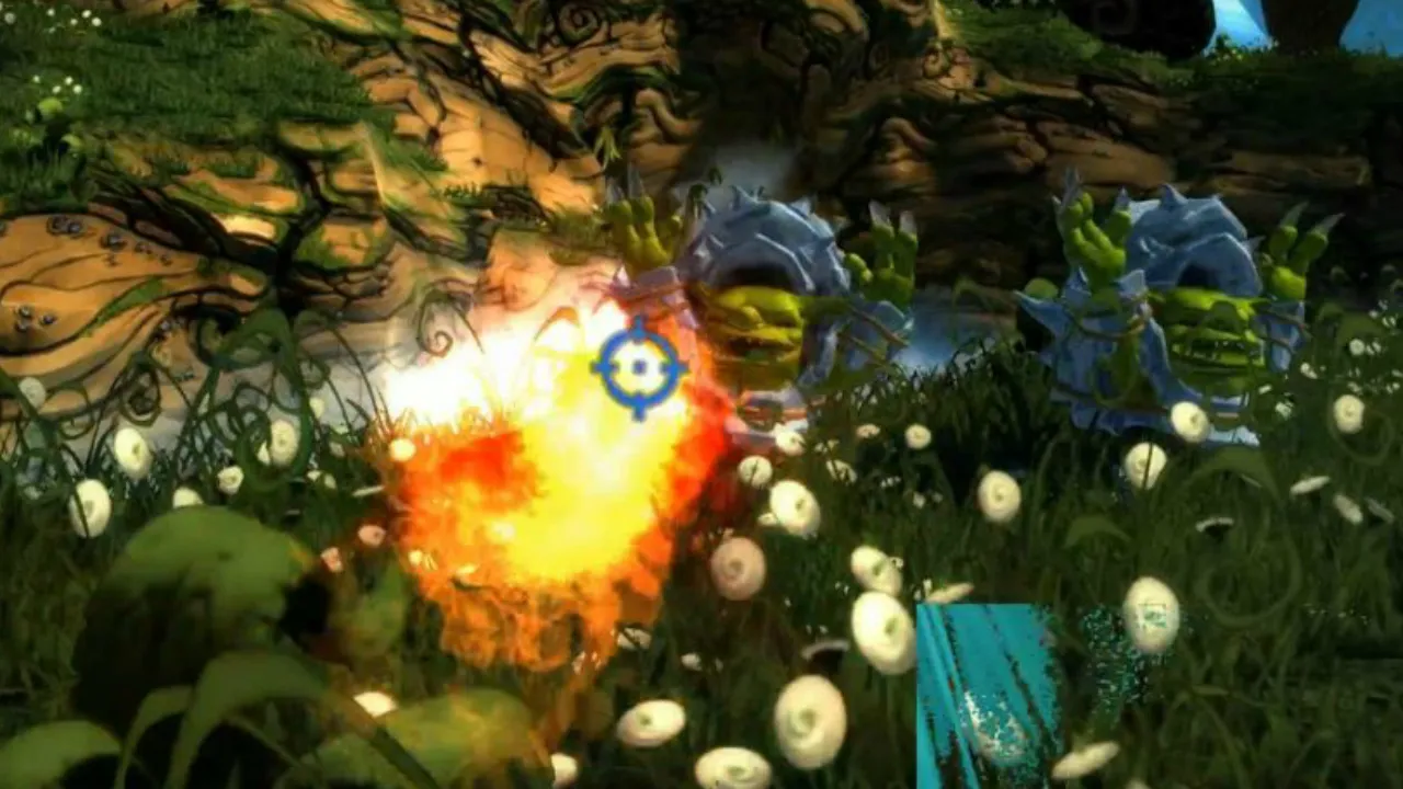 To take it another step, the level is shown in first-person shooter mode. Rather than play the game of cat and mouse, the player can shoot the character instead of chasing him using the new reticle as a guide.