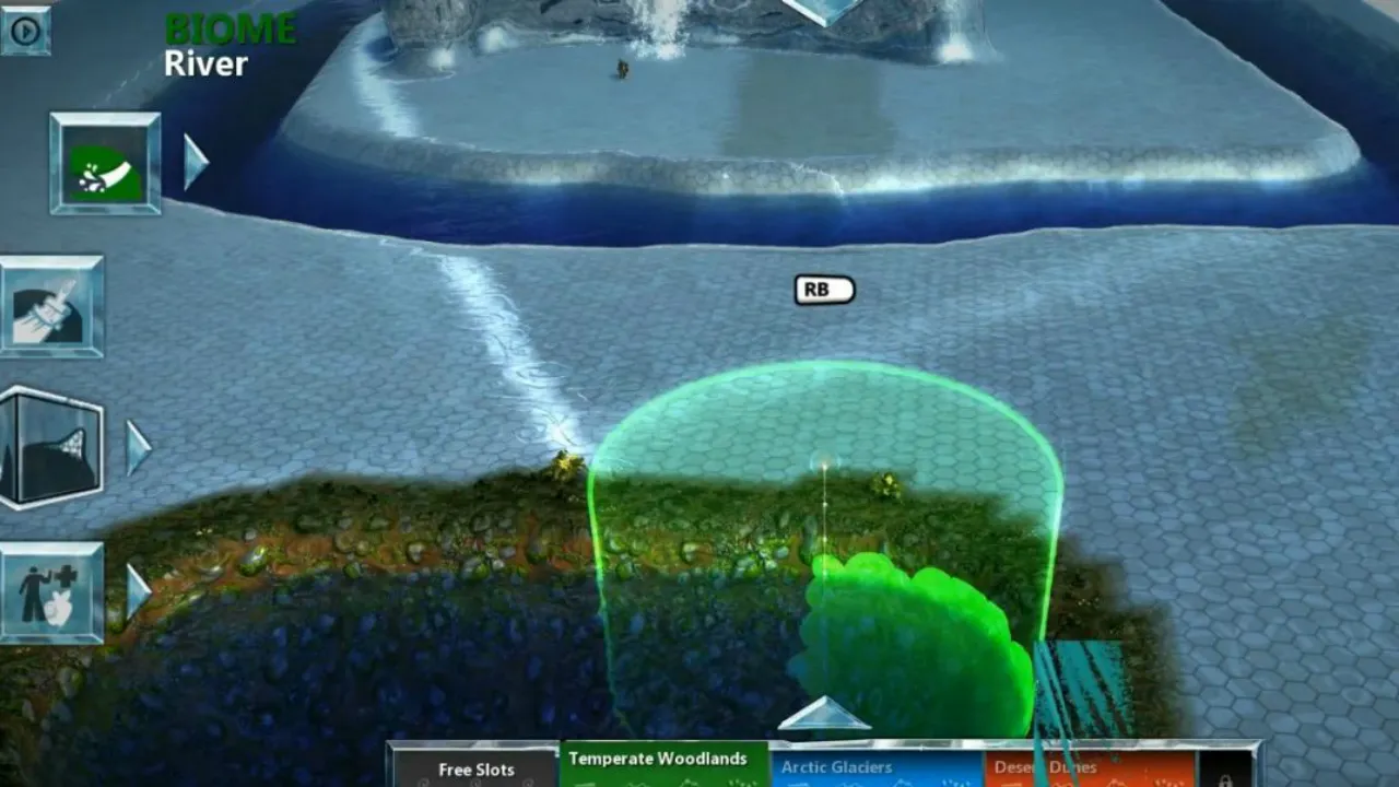 The various biomes make the level more noticeably realistic. Above, a river biome is spread out upon a water mass to give it a more natural appearance.