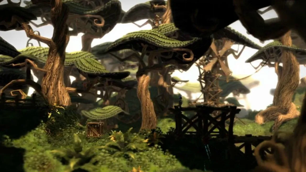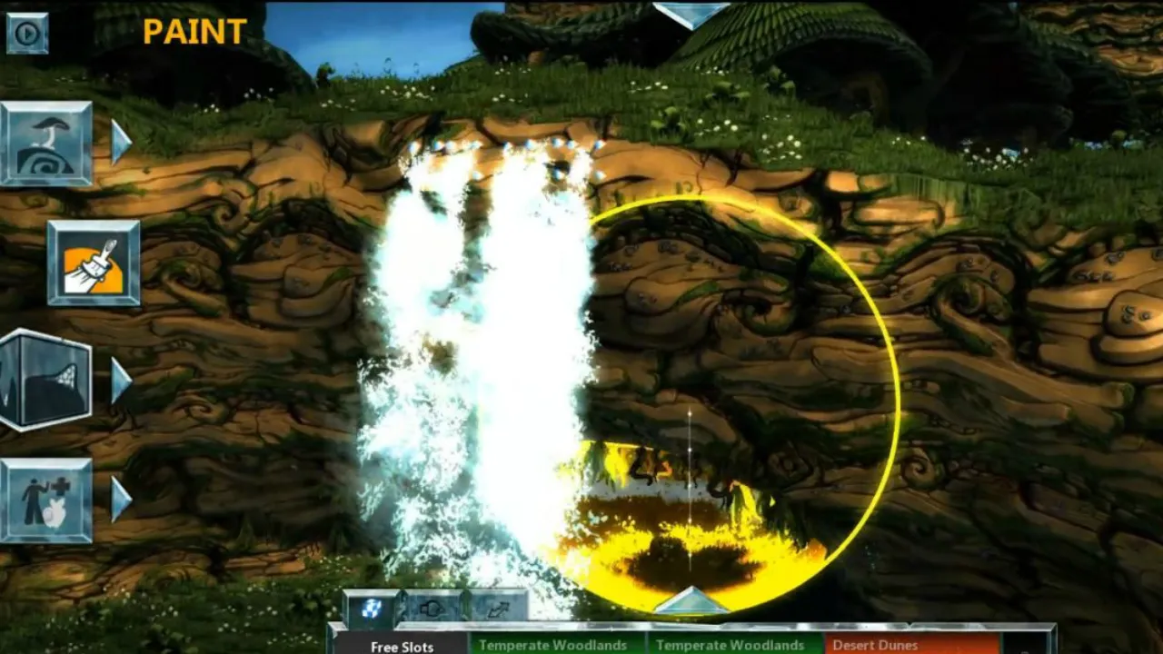 To add more depth to the world, players can construct land masses by expanding or lowering land. This latter option combined with tinkering with water levels is how water masses can be created. In the image above, a massive tree stump is created by expanding land mass upwards and hollowing out the center of the mass. Afterwards, texture is added to the stump to make it look more realistic.