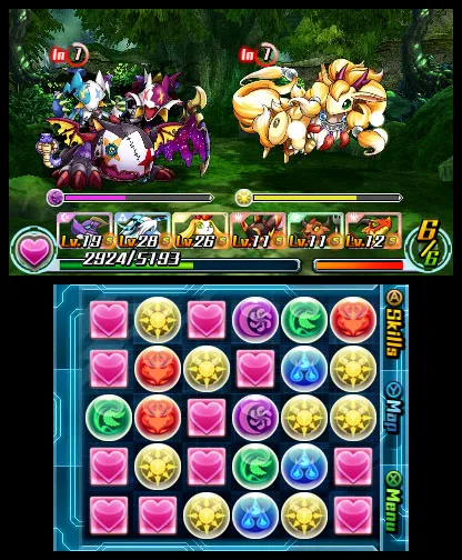 Puzzle & Dragons Z adds a Pokémon-style overworld and a narrative to the original game. Returning players will notice that their favorite collectable beasts are back, but the upgrade system has been tweaked to support the overarching puzzle-piece theme (bad guys are yanking puzzle-piece-shaped chunks of the world off the planet). Defeated enemies drop puzzle pieces of their own, and they’re used to evolve your menagerie in a simple minigame. Defeated foes also drop eggs, which are hatched at your HQ. It’s a little annoying to have to trudge back home to see what they contain, but the ability to fast travel minimizes the hassle.