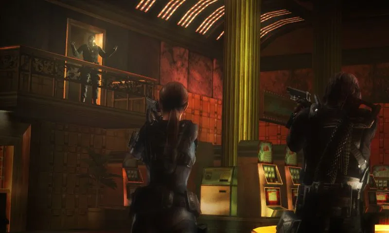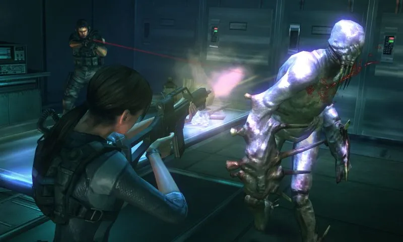 The story picks up between the events of Resident Evil 4 and 5. Jill, Chris, and their new partners seek to uncover the truth about the destruction of a city called Terrorgrigia and combat a brand new virus. We also learn more about the BSAA (Bioterrorism Security Assessment Alliance), the previously enigmatic organization Chris and Sheva work for in Resident Evil 5. Shedding light on this organization, the FBC (Federal Biohazard Commission), and the leaders behind them brings new weight to the series’ sagging story. The narrative is delivered in digestible, TV episode-like chunks, complete with helpful recaps between chapters. This structure allows Revelations to incorporate intriguing flashbacks, parallel storylines, and some unexpected twists and turns.