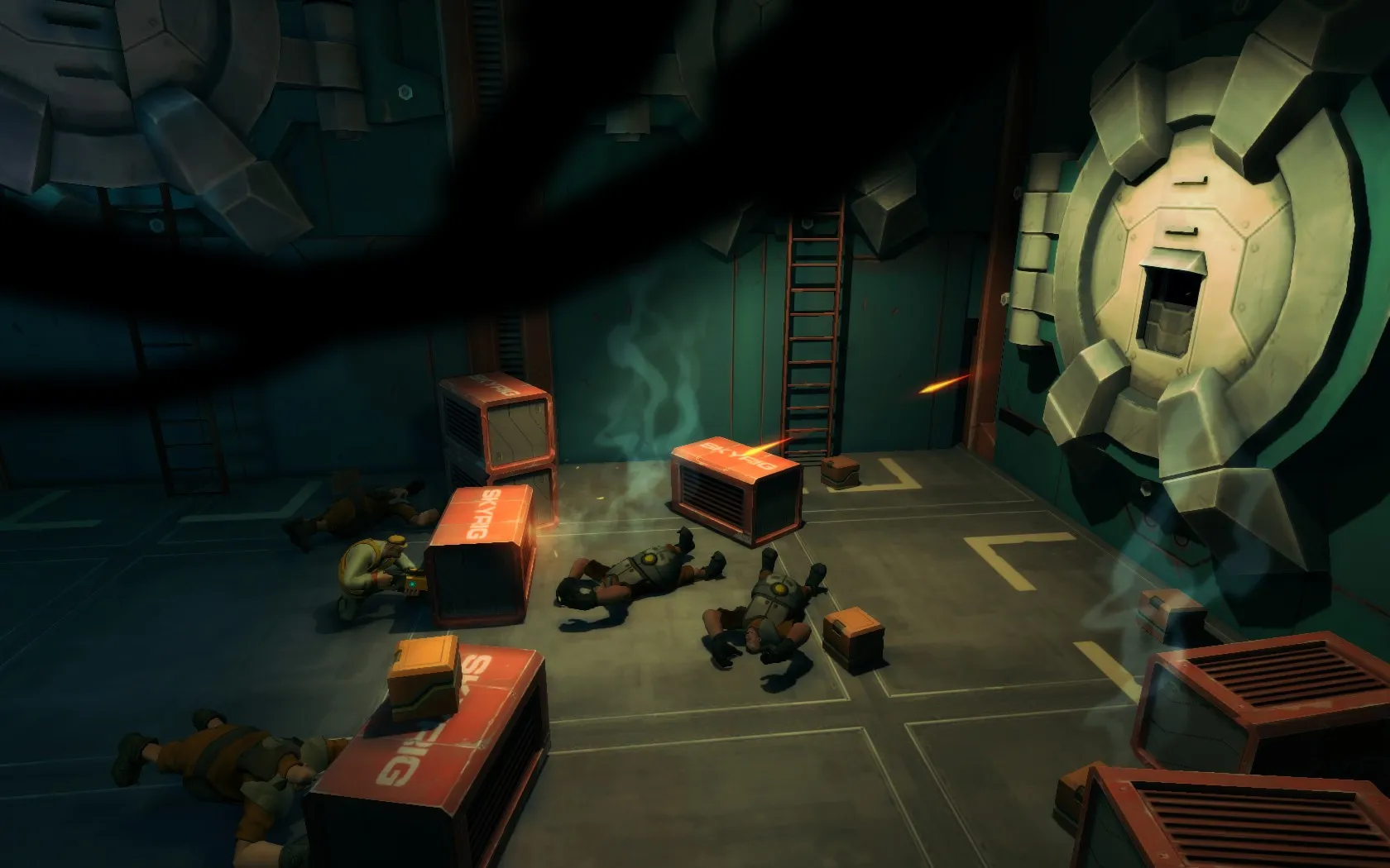 While Rochard’s puzzles kept me intrigued until the closing credits, the enemies clogging its hallways often felt like they were just in the way. Rochard’s AI rarely does anything more than casually stand in front of you and fire from the hip as you riddle their bodies with bullets or drop heavy crates on their heads. The platforming also feels loose, but fortunately the game rarely requires precision platform jumping, and the few missed lunges you make are fairly free of consequences – so I never grew frustrated by the floaty controls.