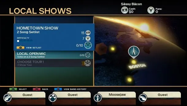 Though the songs are entertaining, the modes offer few surprises. Quickplay options are ideal for get-togethers, with smart organization options and a smooth and simple user interface. The new tour encourages choice, demanding again and again that you decide between big style, big fans, or big money. As a result, you could play two complete tours and visit entirely different cities and shows.