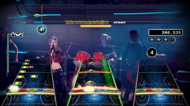 A few novel tricks are in the mix. Freestyle guitar solos are a new riddle to unravel, and they also infuse a sense of freedom the guitarist role has always lacked. By holding down different buttons and strumming at different speeds, players can approximate the feel of crafting a live solo, complete with distortion effects and frantic finger tapping. These moments are fun and can sound amazing at times, but Harmonix has wisely allowed purist players to tap the d-pad to opt out, restoring the artist’s original intended solo. I’m a big fan of the new freestyle vocal options as well, which allow singers on higher difficulties to harmonize within the song’s key without any score penalty, just like a real frontman would. Along with improved crowd noise and chanting, this is the best approximation yet of an onstage show.